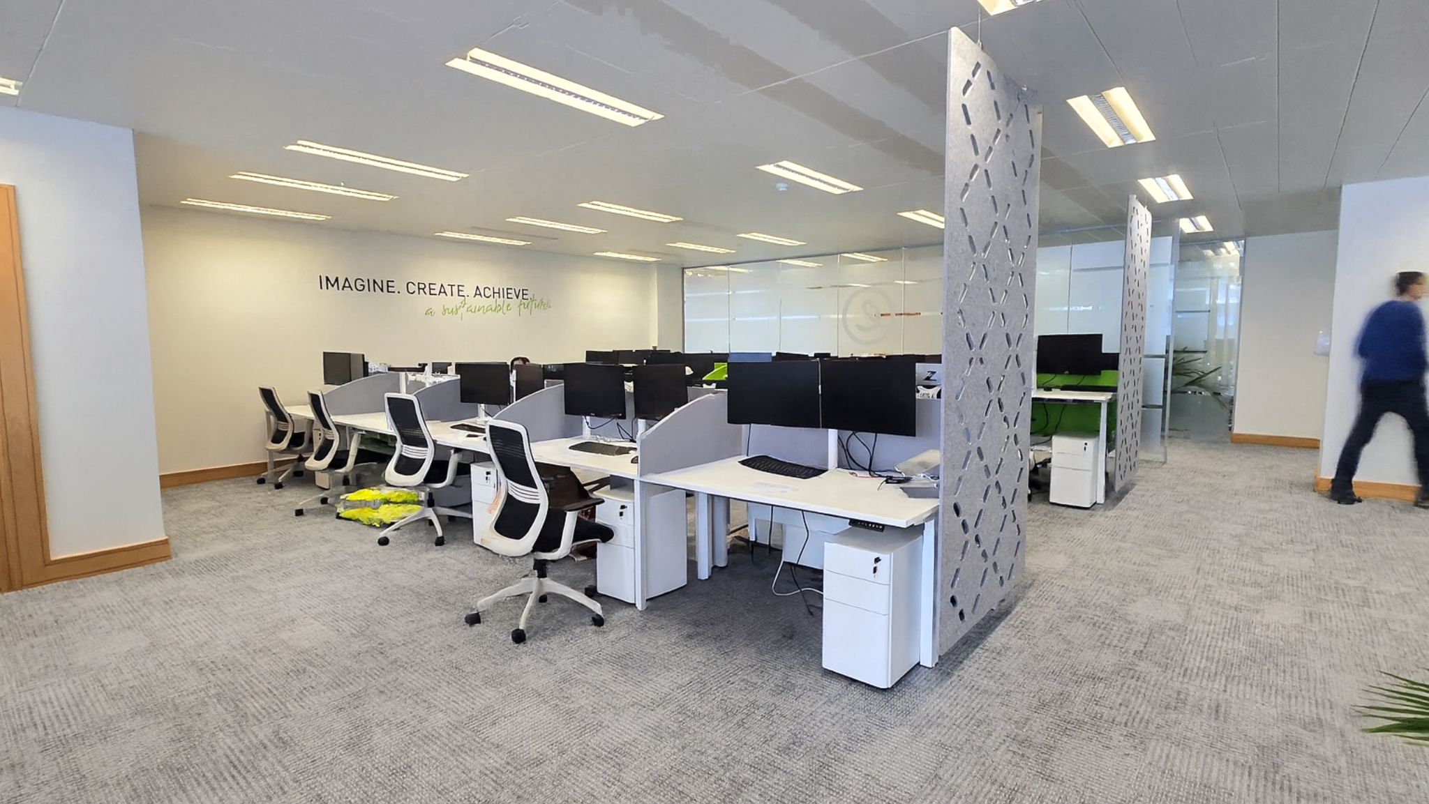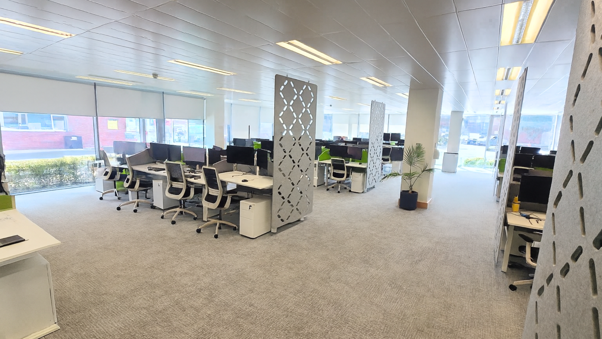 - New Open-Plan Layouts (Phases 1 & 2): Reconfigured workstation arrangements to maximise capacity while retaining a sense of openness and natural flow.