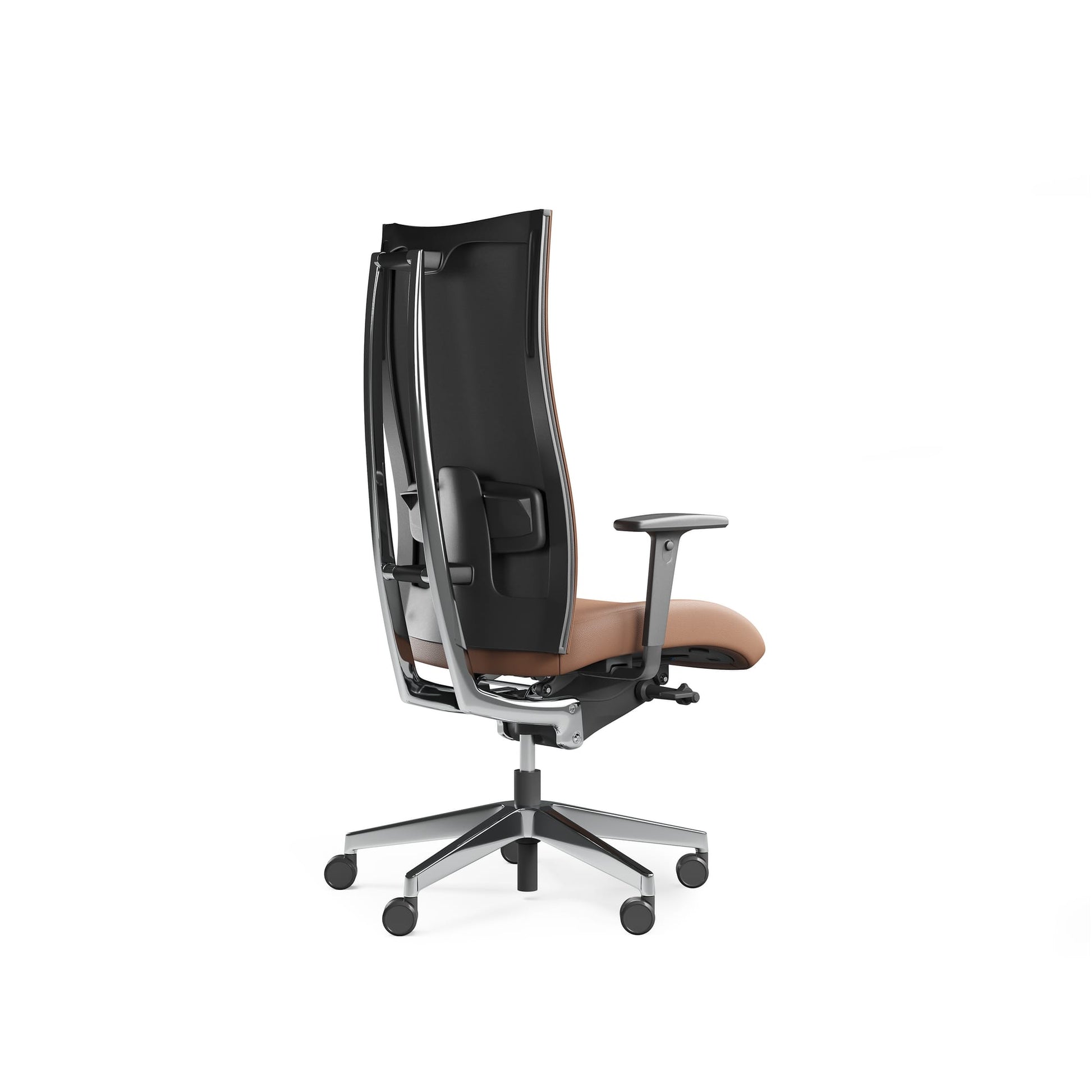 Action is a cabinet armchair, which provides both great comfort and optimal positioning for the body. Features such as smooth adjustment of backrest and seat angle, lumbar support adjustment and adjustable armrests contribute to this armchair exceptional ergonomics. A distinguishing feature of the model is wide and adjustable headrest – a solid support for a user’s head and neck. The form of the chair is highlighted by the use of aluminium elements which shape its slightly industrial character
