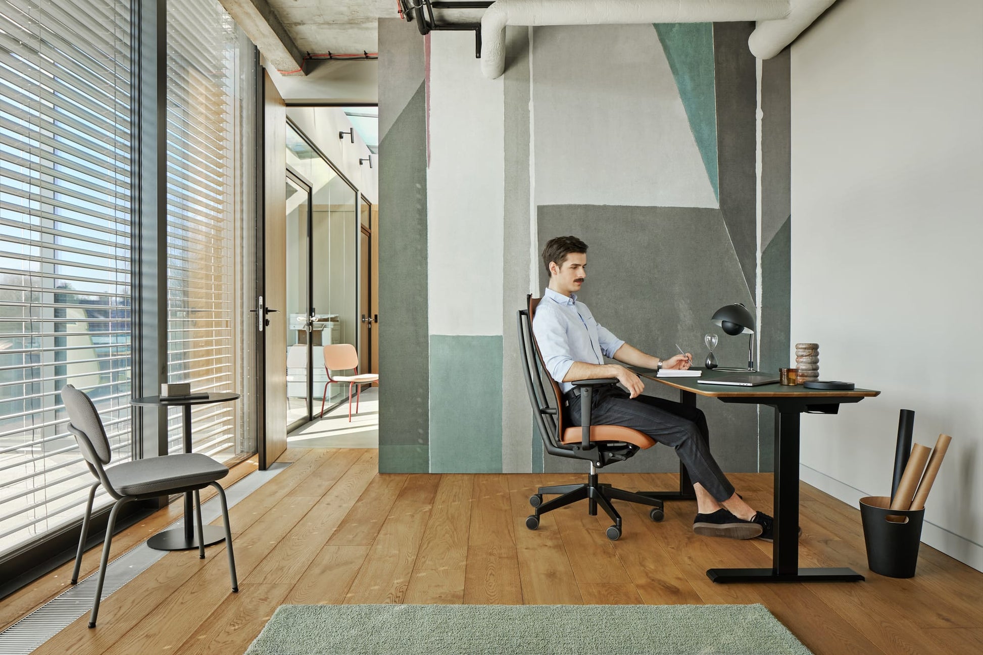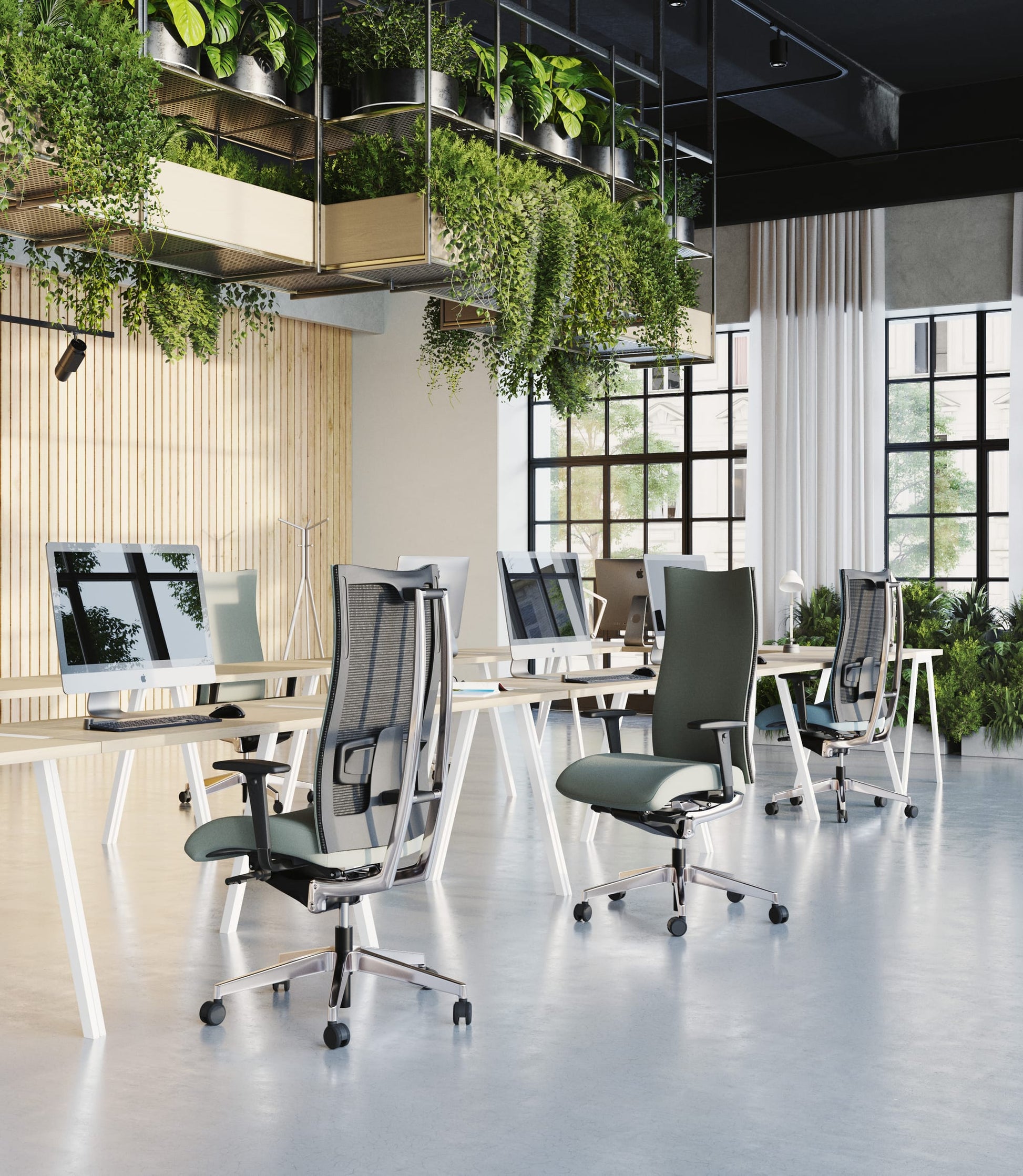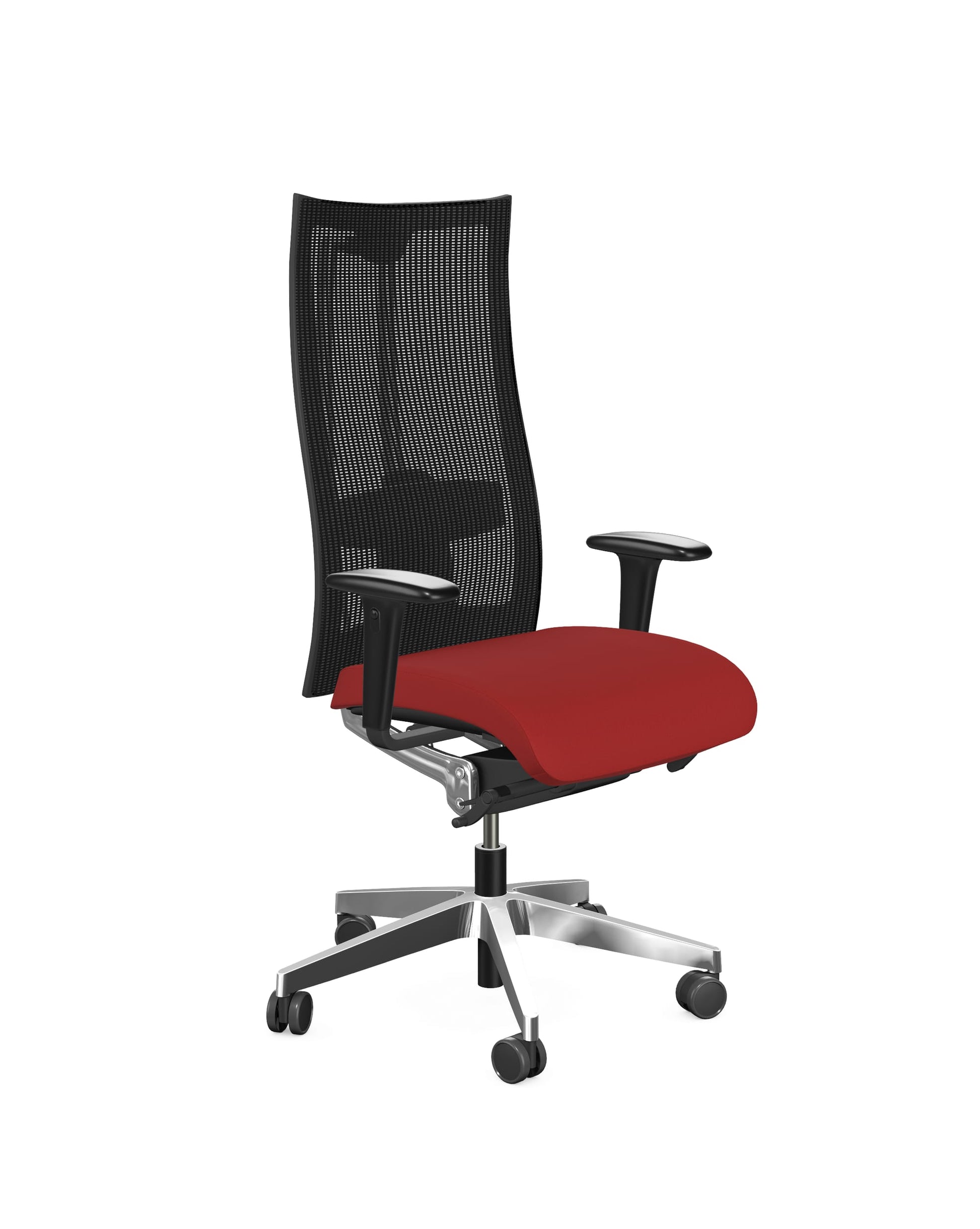 Action is a cabinet armchair, which provides both great comfort and optimal positioning for the body. Features such as smooth adjustment of backrest and seat angle, lumbar support adjustment and adjustable armrests contribute to this armchair exceptional ergonomics. A distinguishing feature of the model is wide and adjustable headrest – a solid support for a user’s head and neck. The form of the chair is highlighted by the use of aluminium elements which shape its slightly industrial character