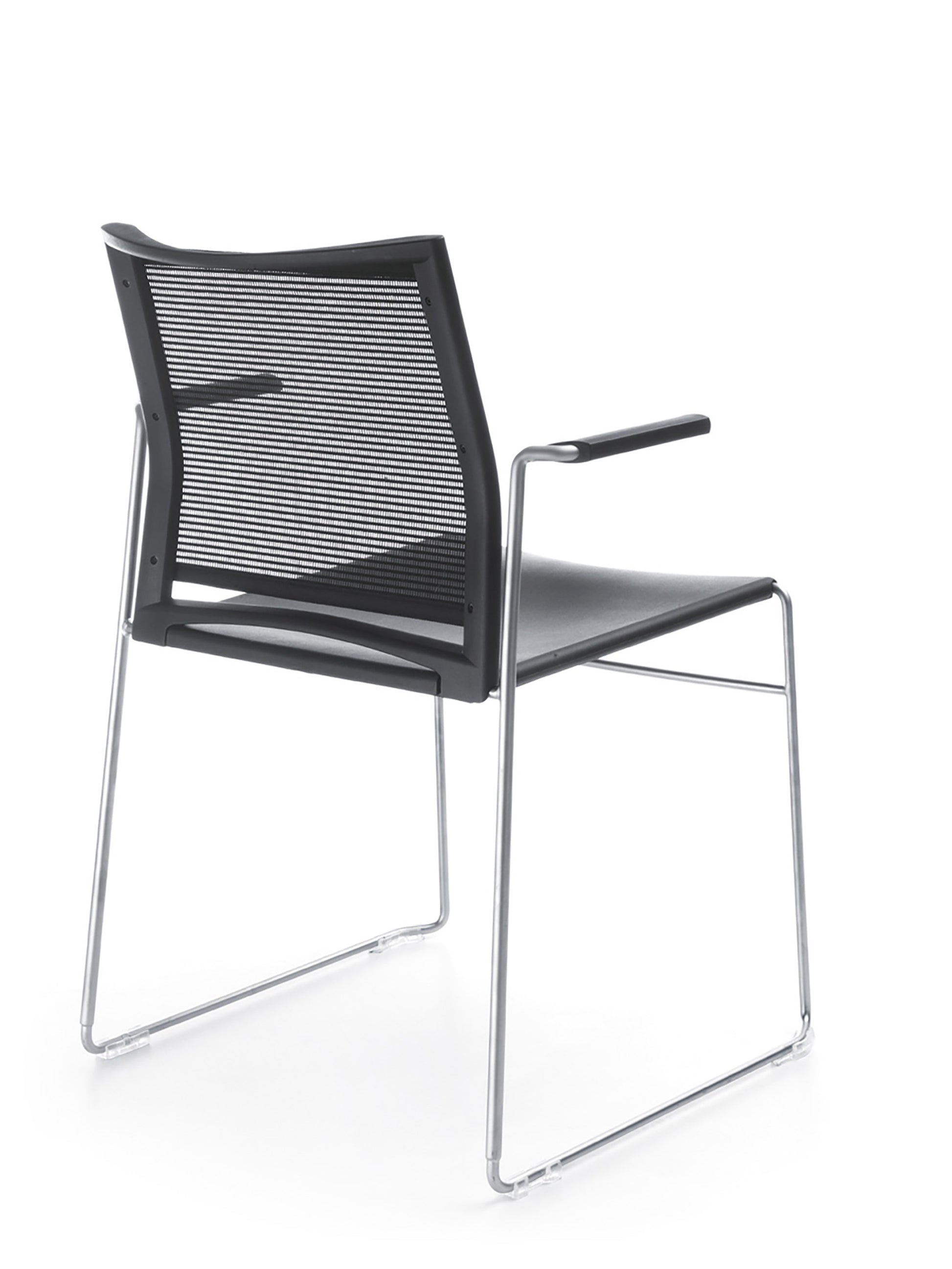 Regardless of the configuration finishes all the chairs in this family can be stacked.