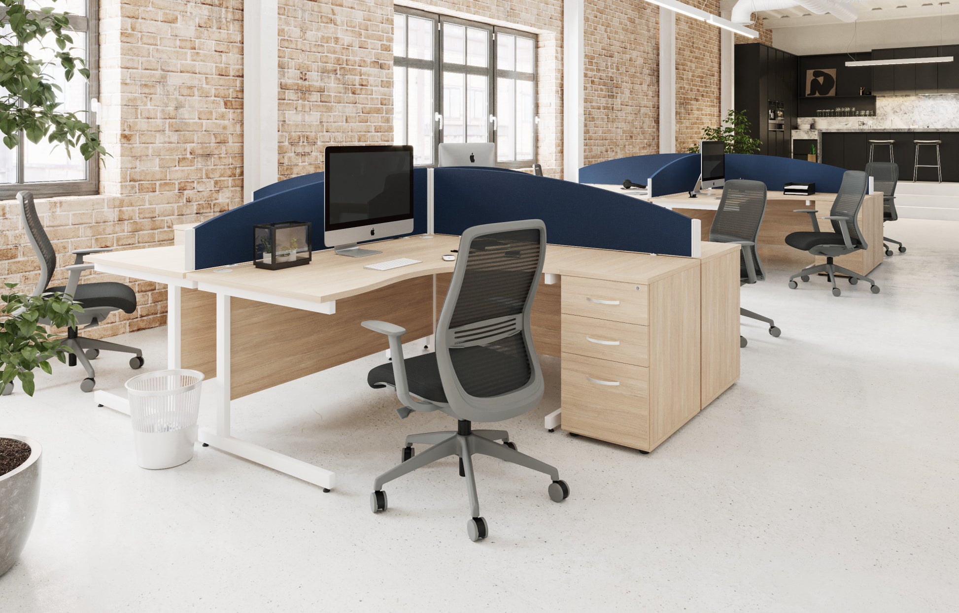 All desk tops and panel legs are constructed from E1 grade heat and scratch resistant 25mm melamine panels.