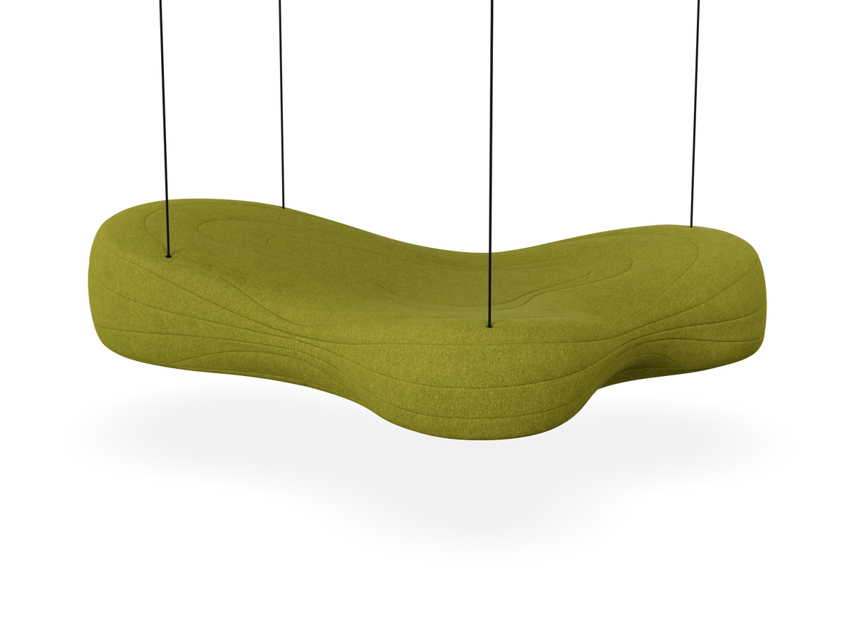 The modules are on small hidden wooden legs so that the sofas look like they are lying directly on the ground, or they may be suspended on ropes, which gives the impression of floating in the air.