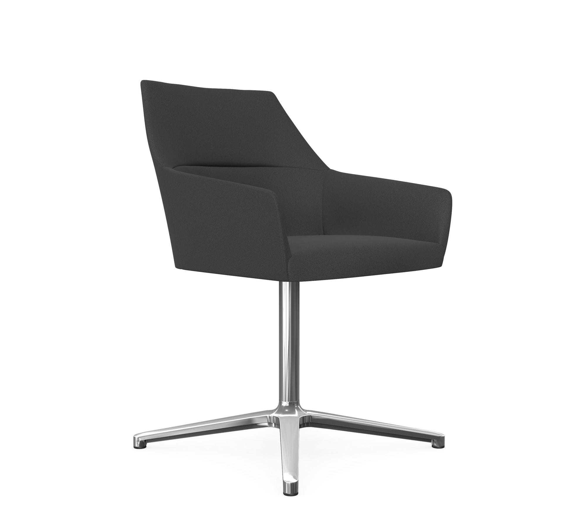 The collection offers chairs with thin metal frames, on wooden legs or 4-star base. Chic armchair is designed for relaxation zones in hotels, guesthouses, lobbies and offices. It has a characteristic low-seated shape compared to standard seating, with reclined shells and extremely comfortable foams that welcome users to enjoy less formal meetings. Chic seating is mounted on a swivel base equipped with an auto-return function, making it ideal for areas that need to be kept neat and orderly.