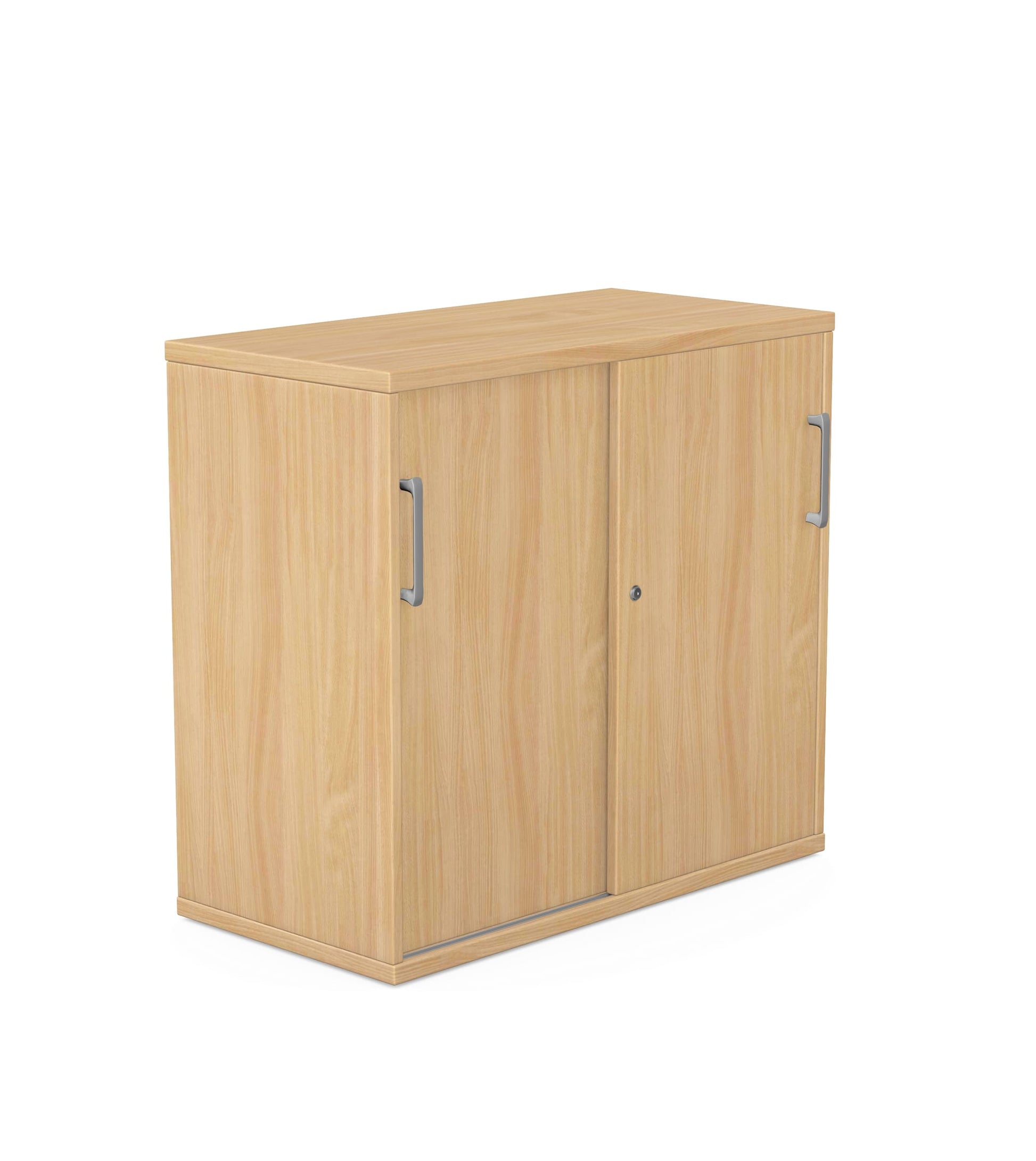 A small handy desk cabinet A-20. It has a sliding door with a lock and 2 shelves.