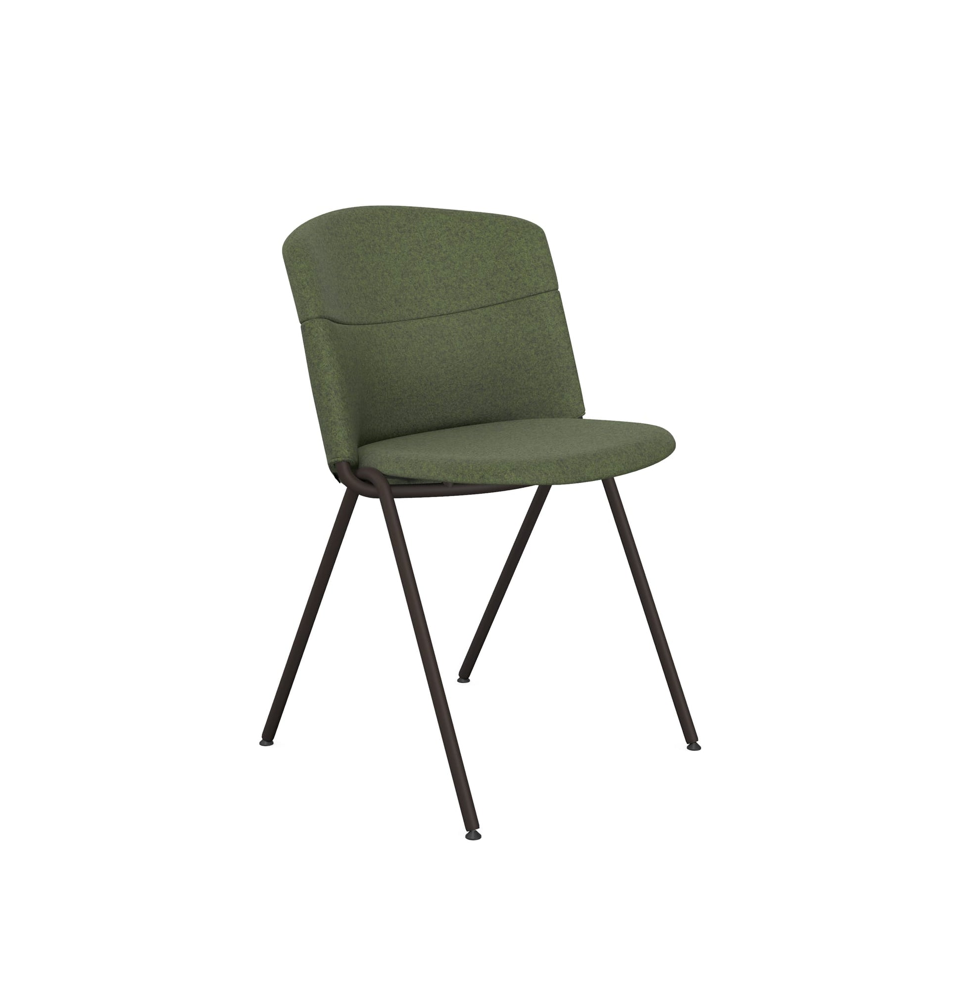 Eke chairs with fully upholstered back acquire an attractive visual quality by using fabrics from Noti's extensive fabric sample book. In this version, Eke chairs will be a great addition to the dining room or representative office space.