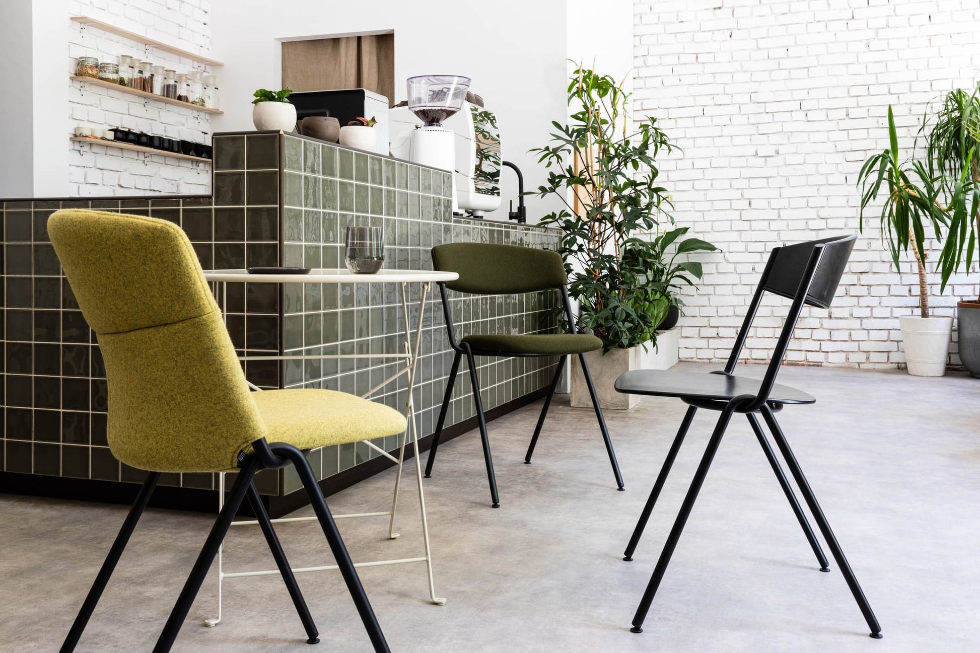 In the non-upholstered variant, the chairs can be easily stacked because of free space left between the seat and backrest. Eke is an extremely functional solution for all interiors where every square metre of space counts.