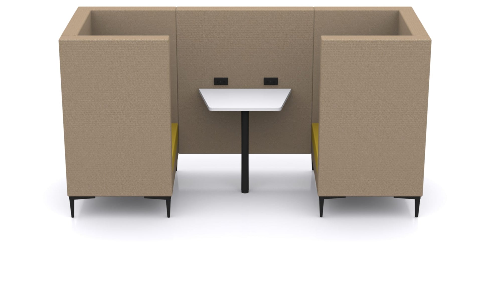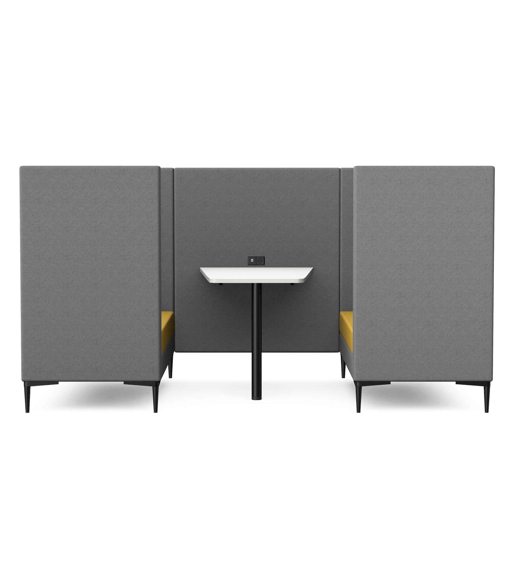 The contemporary minimalistic design of the high back Element seating range provides a workplace solution for soft enclosed sofas and booths. Where improved comfort is preferred, Element has a comfort enhancement available, which includes extra cushioned foam for superior comfort. Additionally soft side arms further elevate the comfort levels. Element is available as a single, two and three seat units as well as in two, four and six person booths. These will suit a multitude of applications.