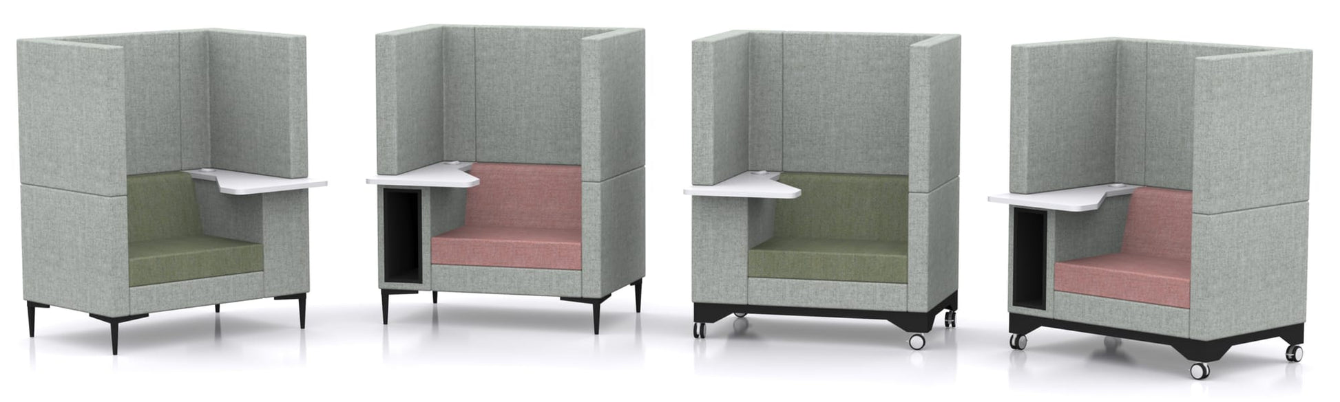 Work is a compact workplace for those mobile workers to focus on episodic tasks. The soft seating pod offers more privacy than traditional workspace, provides an exceedingly comfortable space, with the best framework for working. Work & Move is part of the Element family, using the familiar contemporary minimalistic design. Available in both static and mobile versions for ultimate flexibility applications, with options of bag storage and power charging units.