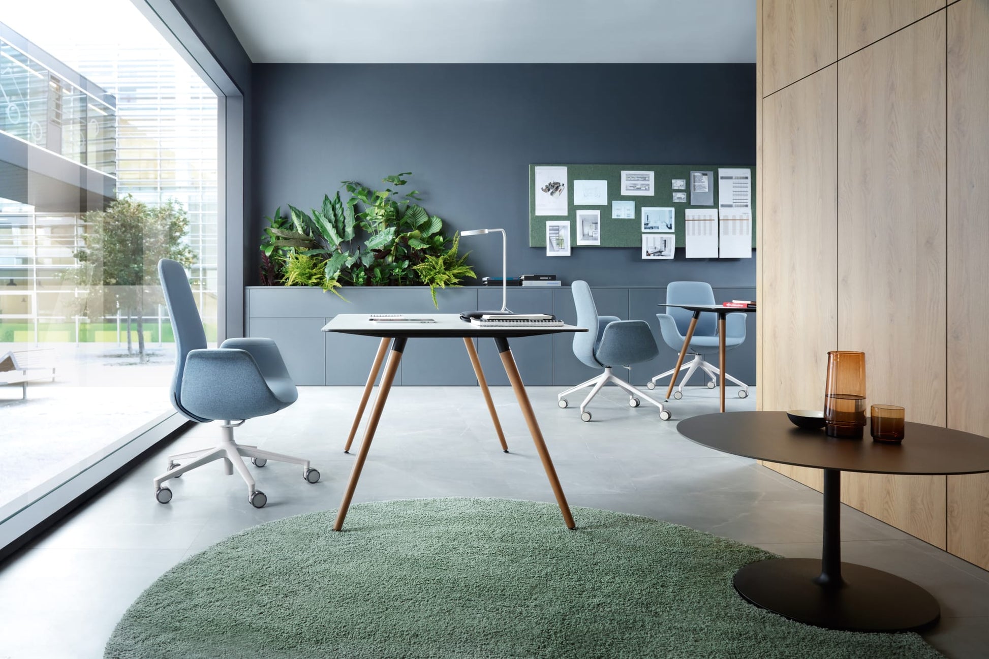 Their soft, sleek lines create cosy atmosphere everywhere they stand, making this design fit the current trend of arranging office spaces in a friendly and home-like style.