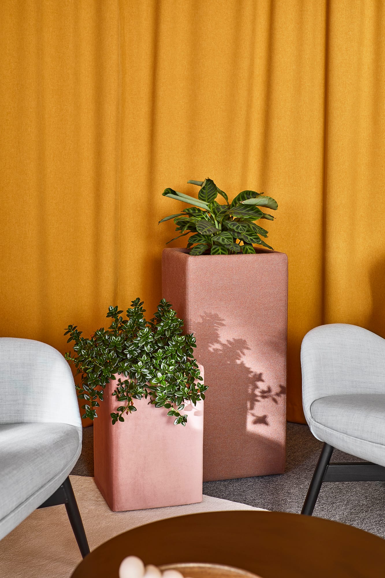 Floris will add a touch of greenery to your office interior - you can also match upholstery to your soft seating for a Cohesive look. Floris is a upholstered pot with a pull-out plastic insert for plants. Extendable handles make it easy for removing the insert from the upholstered part.