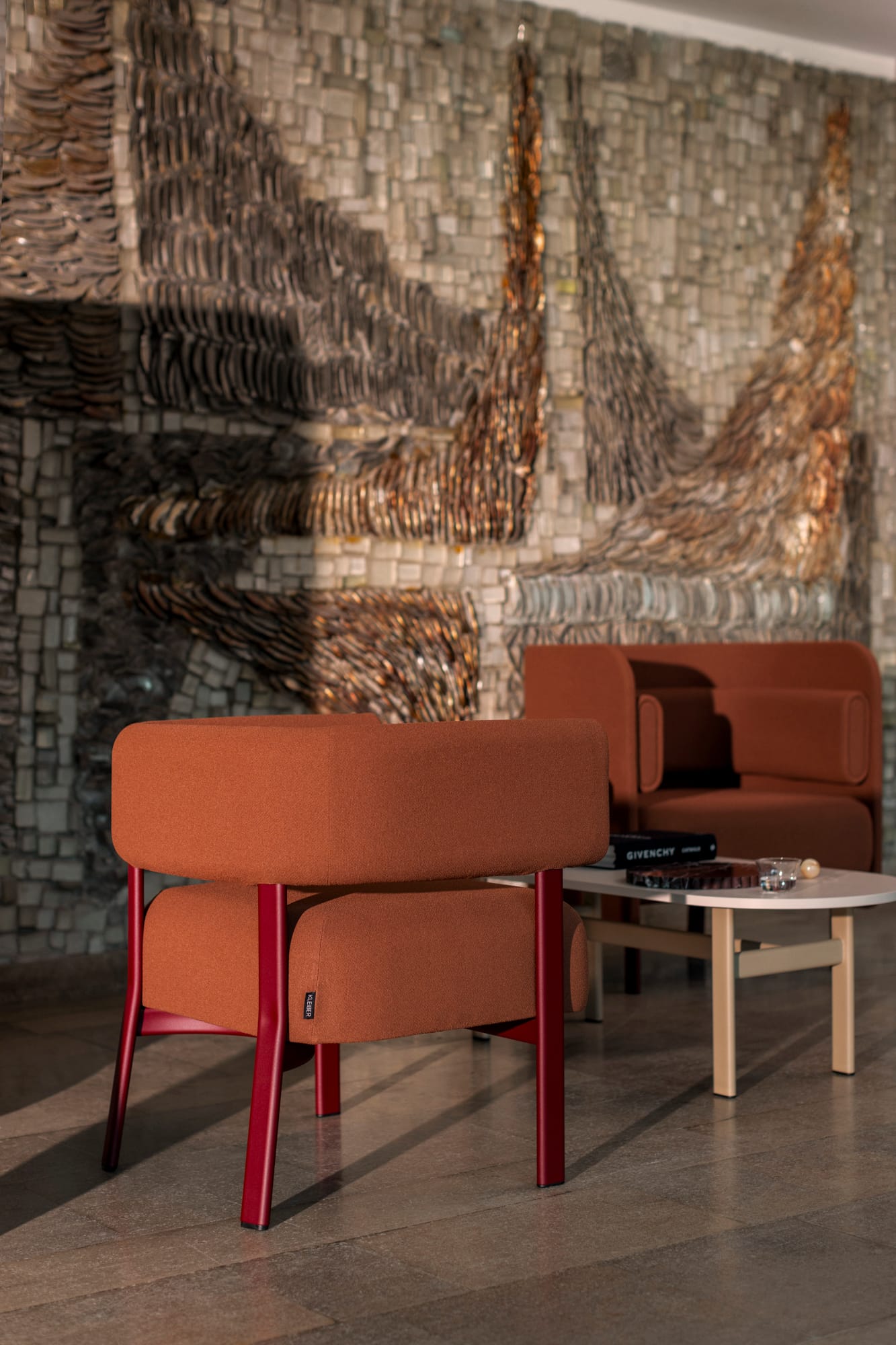 The characteristic oval motif gives the furniture an elegant and unique look. A wide range of products - from chairs, tables, flower pots, to mobile screens, pouffes with a table option and modules with media ports - makes Frame a perfect fit for offices, offices, receptions and waiting rooms. Thanks to the use of media ports, the furniture is friendly to neurodiverse people, allowing isolation from excess stimuli and quietness.