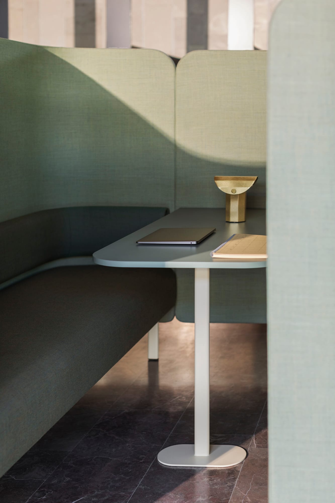 The characteristic oval motif gives the furniture an elegant and unique look. A wide range of products - from chairs, tables, flower pots, to mobile screens, pouffes with a table option and modules with media ports - makes Frame a perfect fit for offices, offices, receptions and waiting rooms. Thanks to the use of media ports, the furniture is friendly to neurodiverse people, allowing isolation from excess stimuli and quietness.