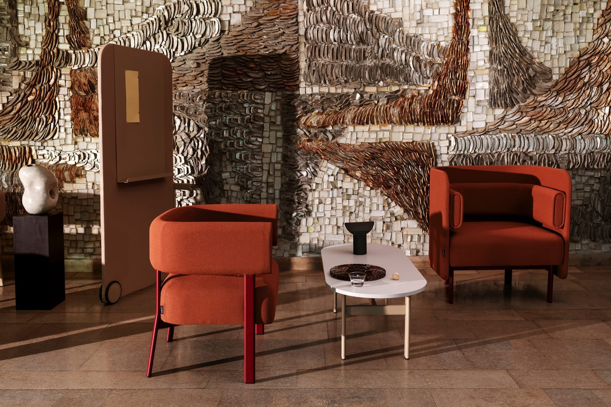 The characteristic oval motif gives the furniture an elegant and unique look. A wide range of products - from chairs, tables, flower pots, to mobile screens, pouffes with a table option and modules with media ports - makes Frame a perfect fit for offices, offices, receptions and waiting rooms. Thanks to the use of media ports, the furniture is friendly to neurodiverse people, allowing isolation from excess stimuli and quietness.