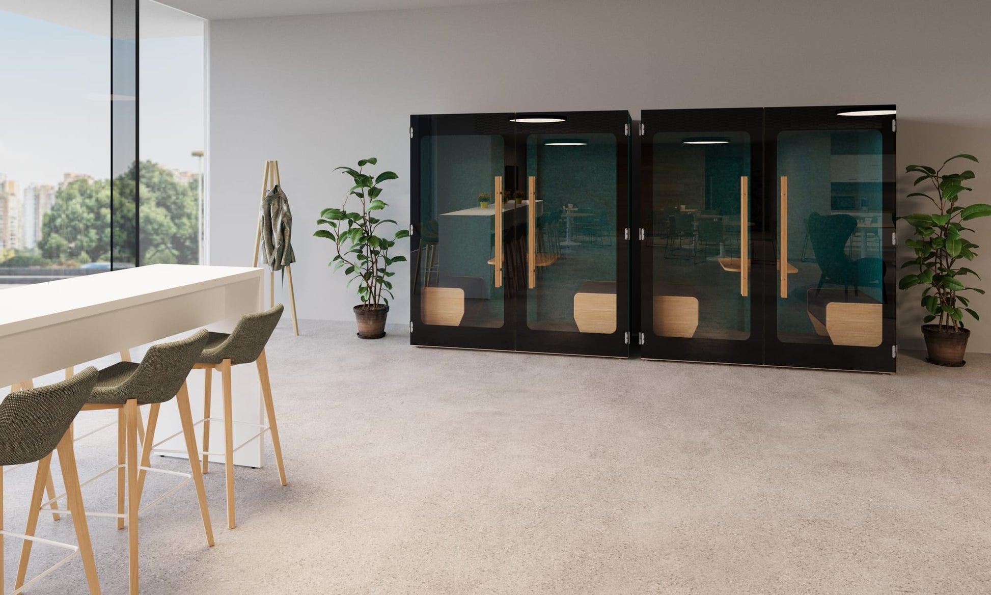 Its small dimensions allow for separating a quiet space for meetings, even in the smallest office. The high level of sound insulation ensures discretion during 1:1 meetings and guarantees a quiet enviroment.