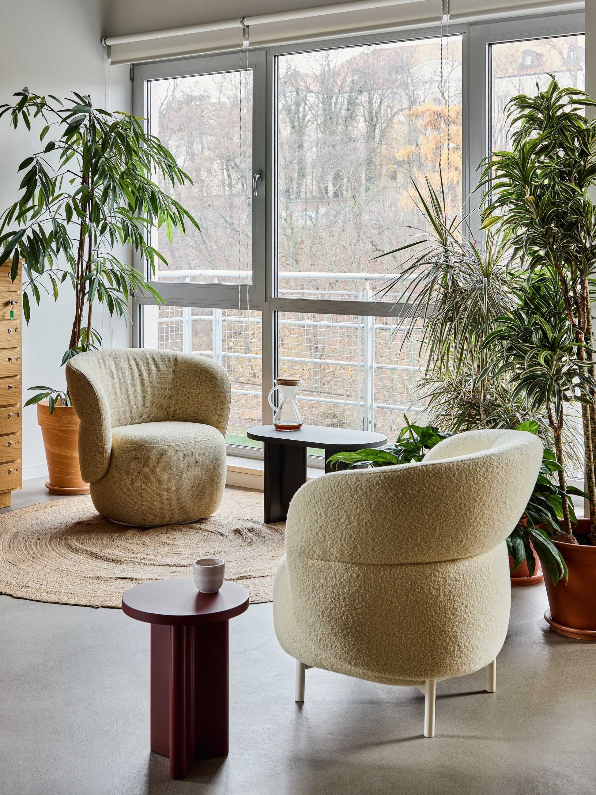 Each piece in the Kori collection is shaped with soft, flowing lines. The rounded, organic curves of the backrests evoke the protective shell of a nutshell, offering a warm and welcoming feel.