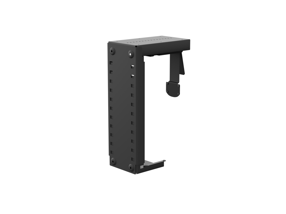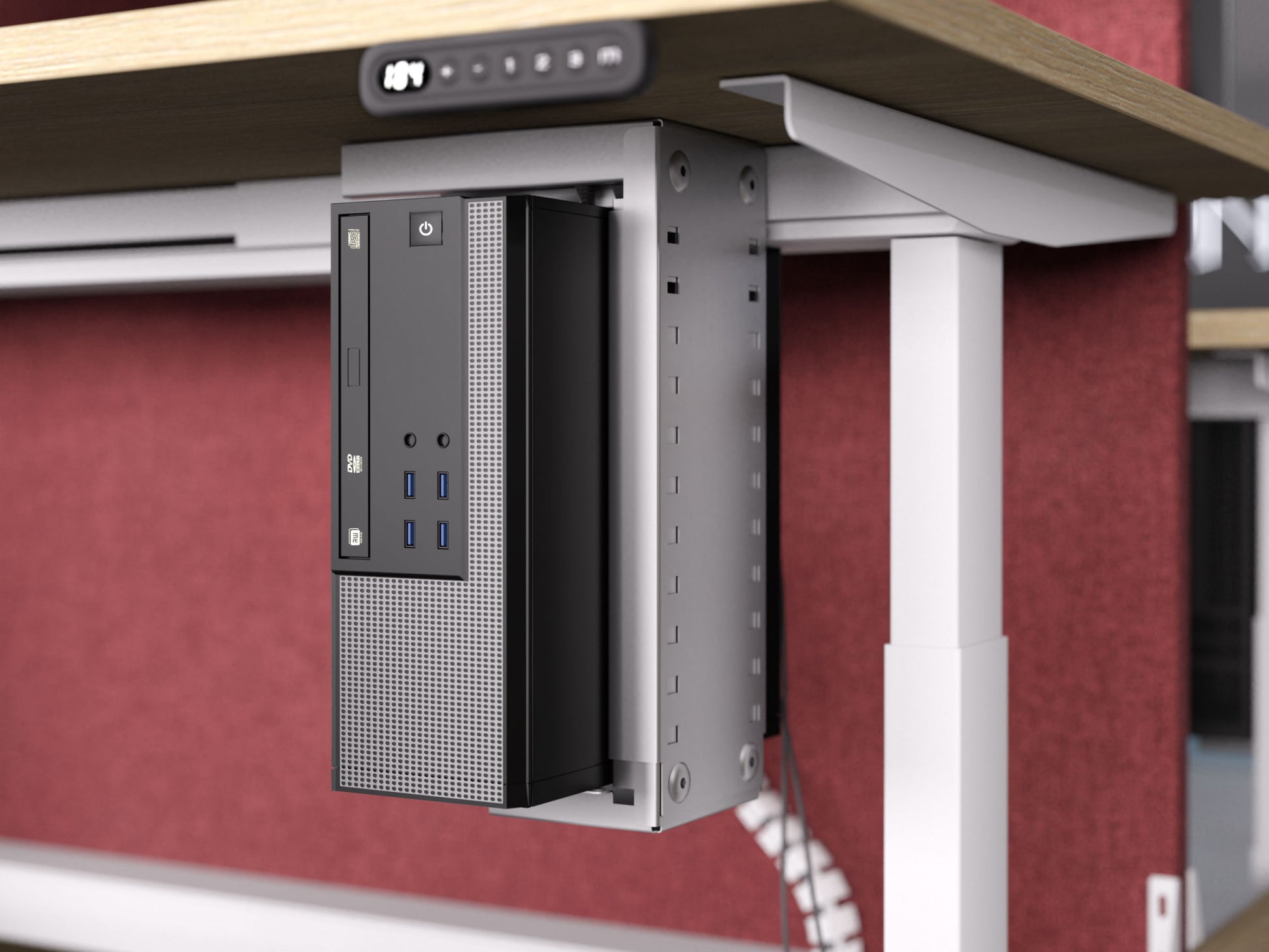 Unfortunately most standard computer desks are not designed for easy access, so you may need to take out one or two parts of the desk and install a CPU Holder Under Desk Mount.