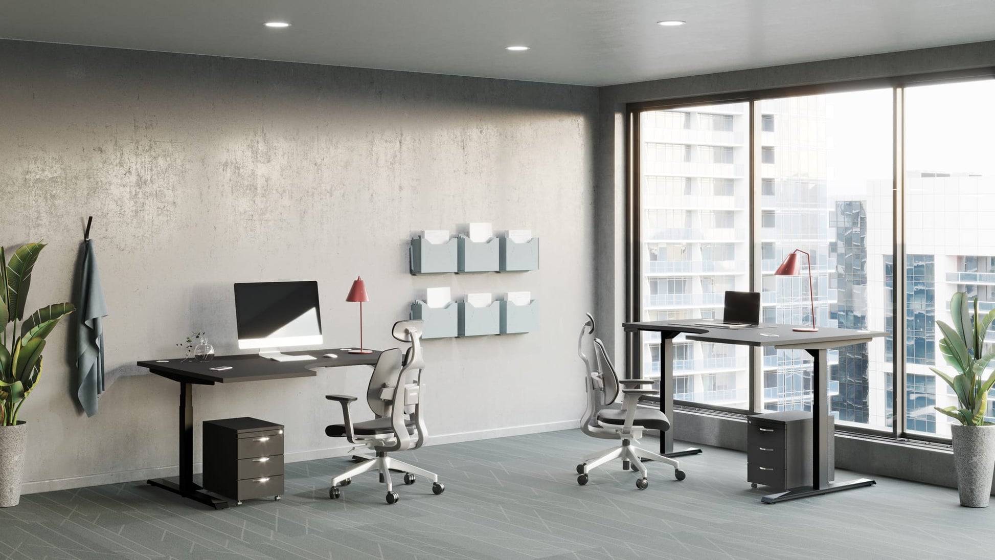 Leap is an electrically adjustable range of desking comprising of a single stand-alone desk & bench desk.