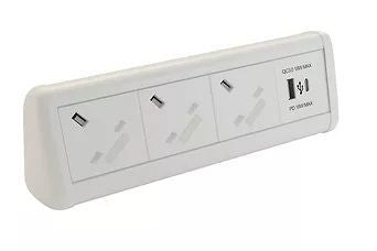The Mini and Maxi desktops are compact white RAL 9003 in colour with optional interchangeable coloured end caps and lids to suit the office colour scheme or mood of the user. Each unit comes with desk clamps and an adhesive pad. A 500mm lead to male 3-pole connector gets under the desk before connecting to a START lead.