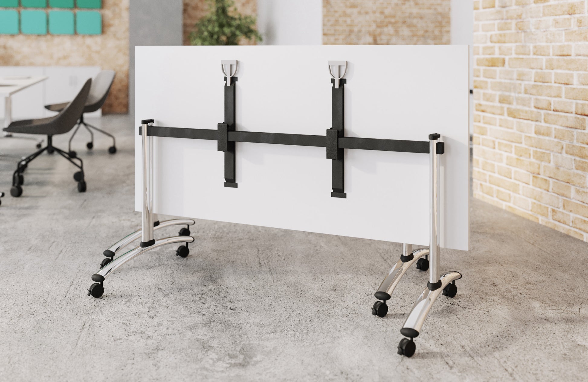 Morph is designed to combine maximum versatility and space saving functionality. “Press” to unfold, “Press” to fold again for simple storage. Rectangular, trapezoid and semi circular tops offer endless configurations.