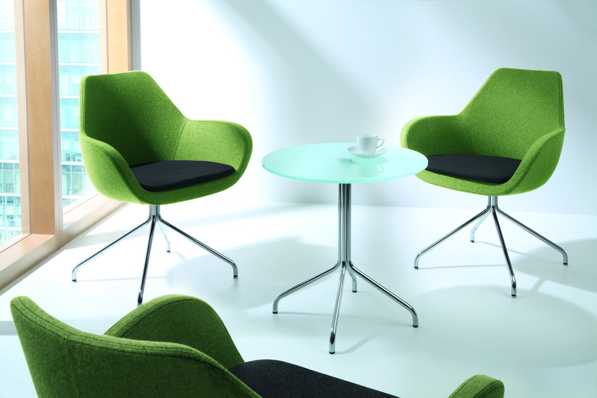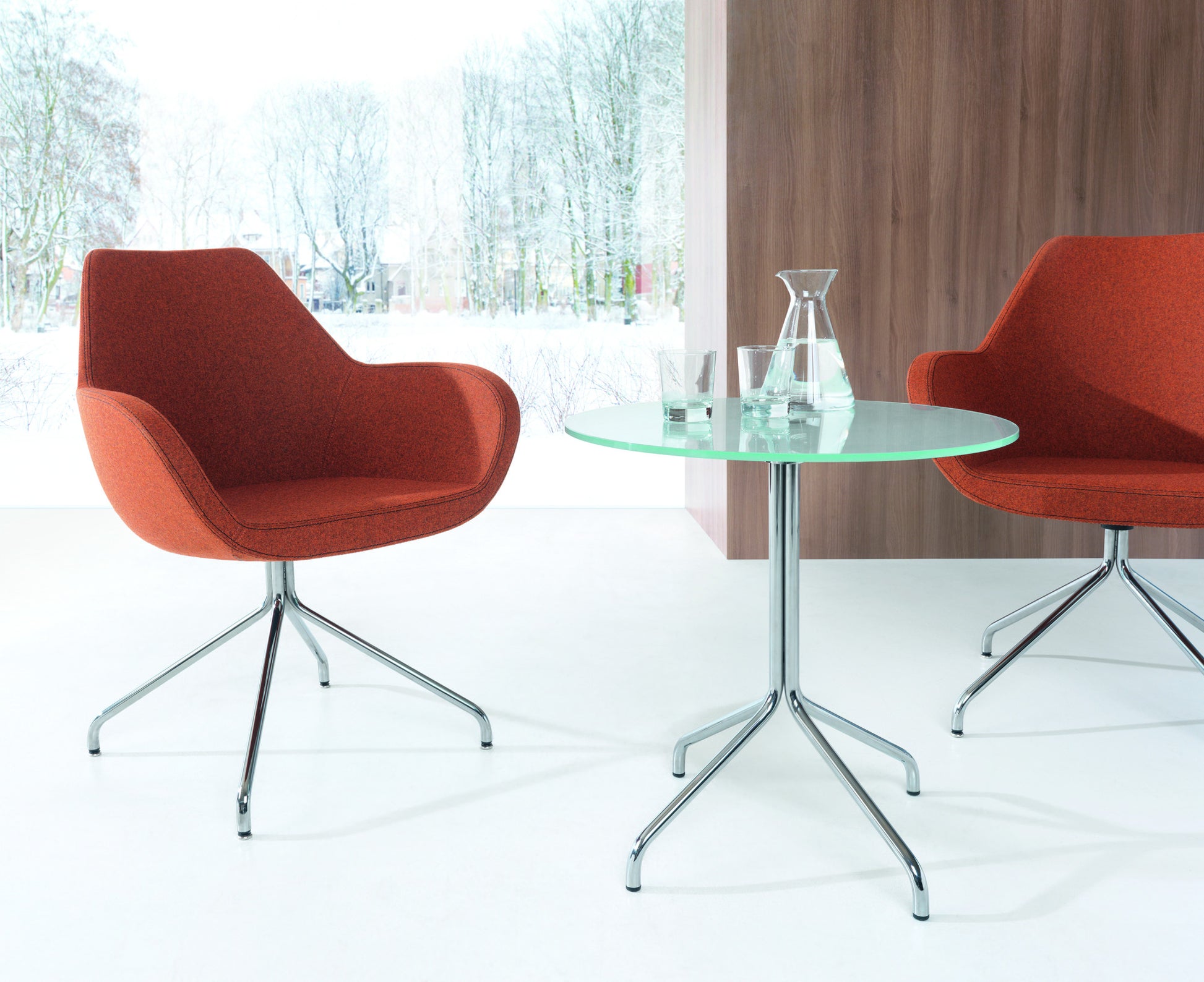 The coffee tables complete our offer of armchairs and chairs to enable interesting arrangements.