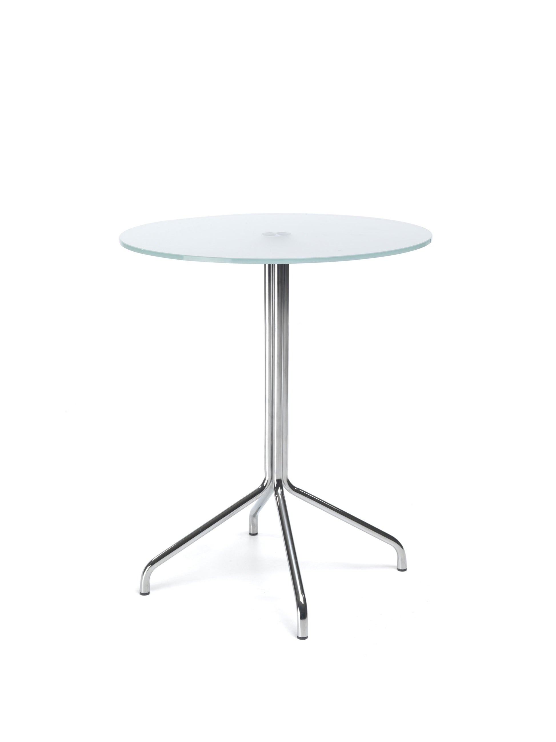 SH models are available in three different heights and four colours of the frame. The round table top is made of tempered satin glass.
