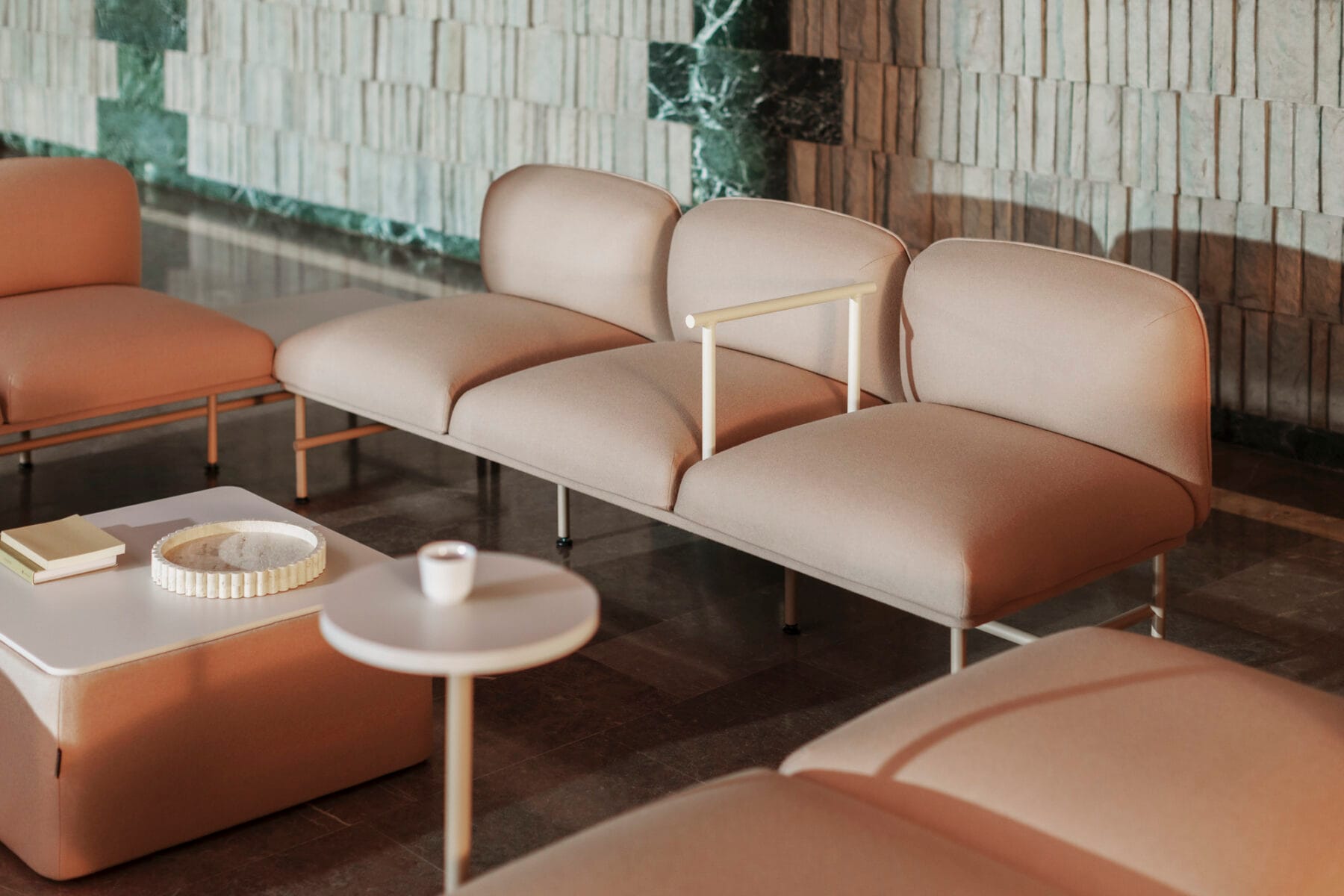 Beyond comfort, Nebula also enhances interior acoustics with integrated screens on sofas and armchairs. Its solid construction, premium materials, and eco-conscious design—eliminating staples in cover assembly for easier recycling—make it a durable and sustainable choice.