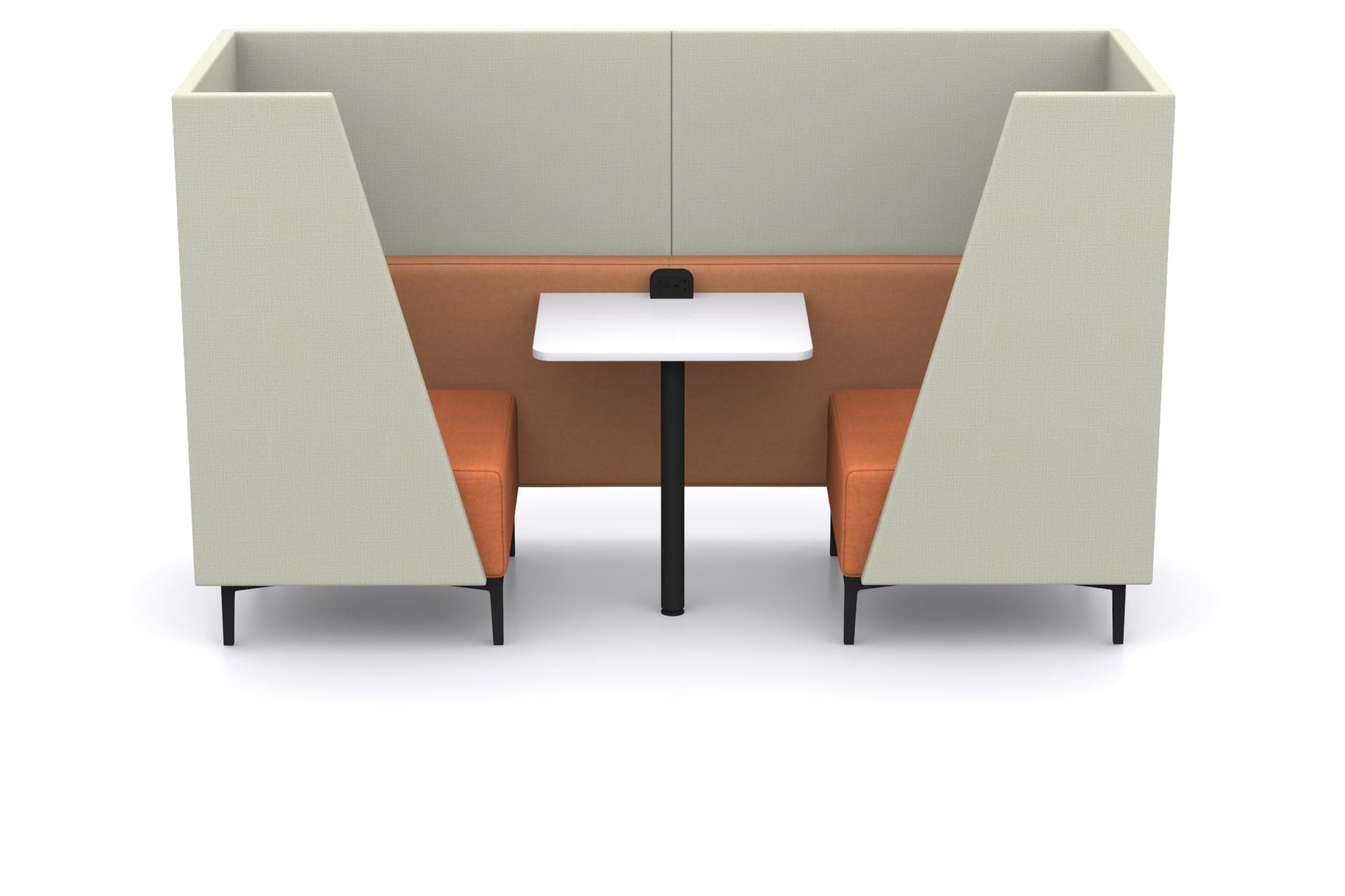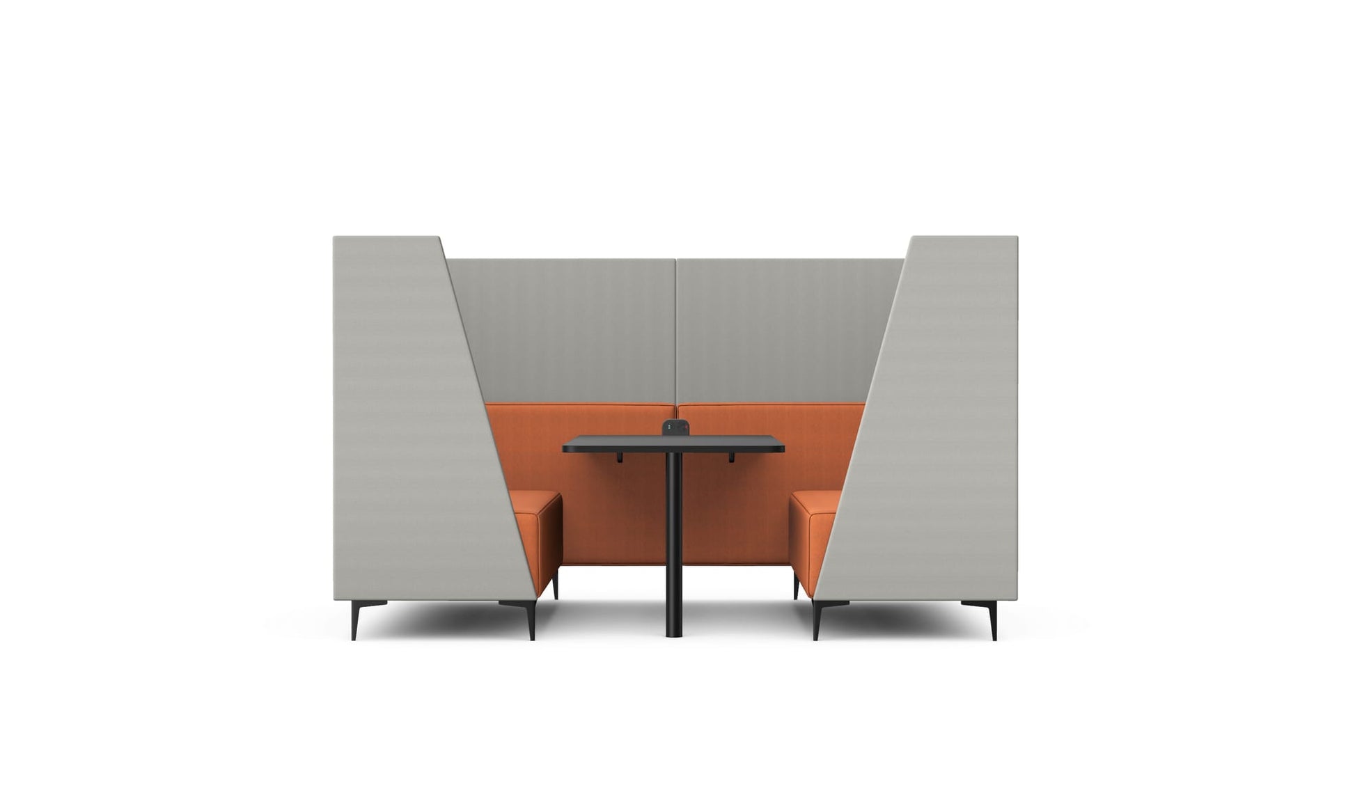 Expanding the Oban family, Social offers a range of collaborative workspace booths in numerous combinations. With a choice of open, enclosed or fully enclosed work booths, all have an extended bridging arm allowing for integrated table arrangements with power and connectivity options. Oban Social is both a selection of booths accommodating working groups of from two to six, or, standalone high back seating in configurations of one, two and three.