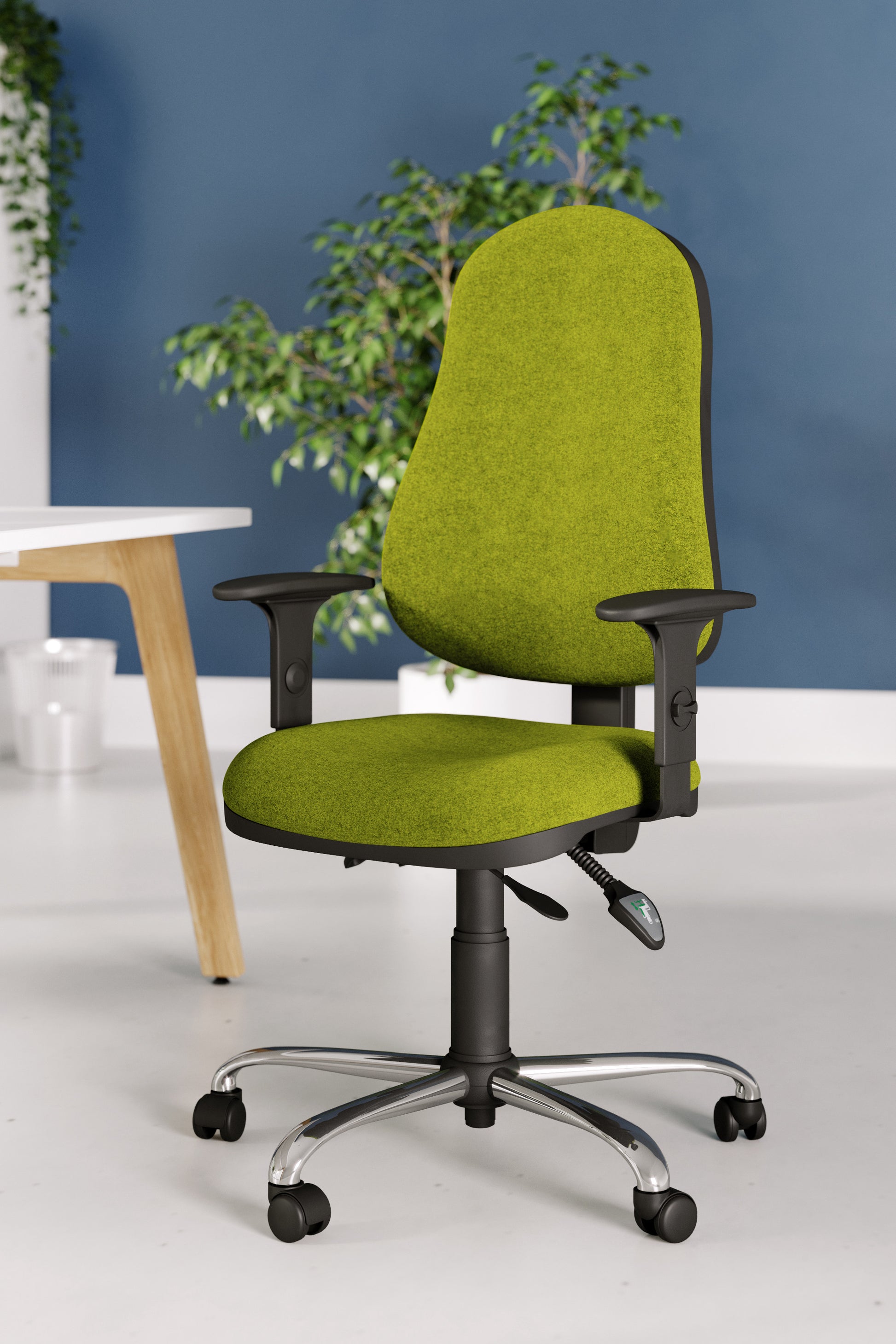 Deep contoured high density recycled foams offer comfort and durability that’s environmentally friendly. OE24 is an ideal office chair with an ergonomic posture curved back that is height adjustable.