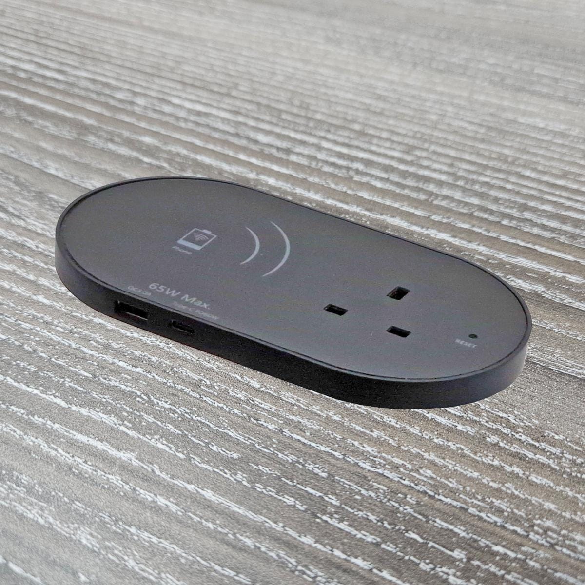 The Combo QI also fits in an 80mm cut-out and offers wireless charging QI 10W/7.5W pad as well as a 5A fused socket, the wireless charger flips open to use, revealing the UK socket and dual 18W USB type A QC & type C PD smart charger.