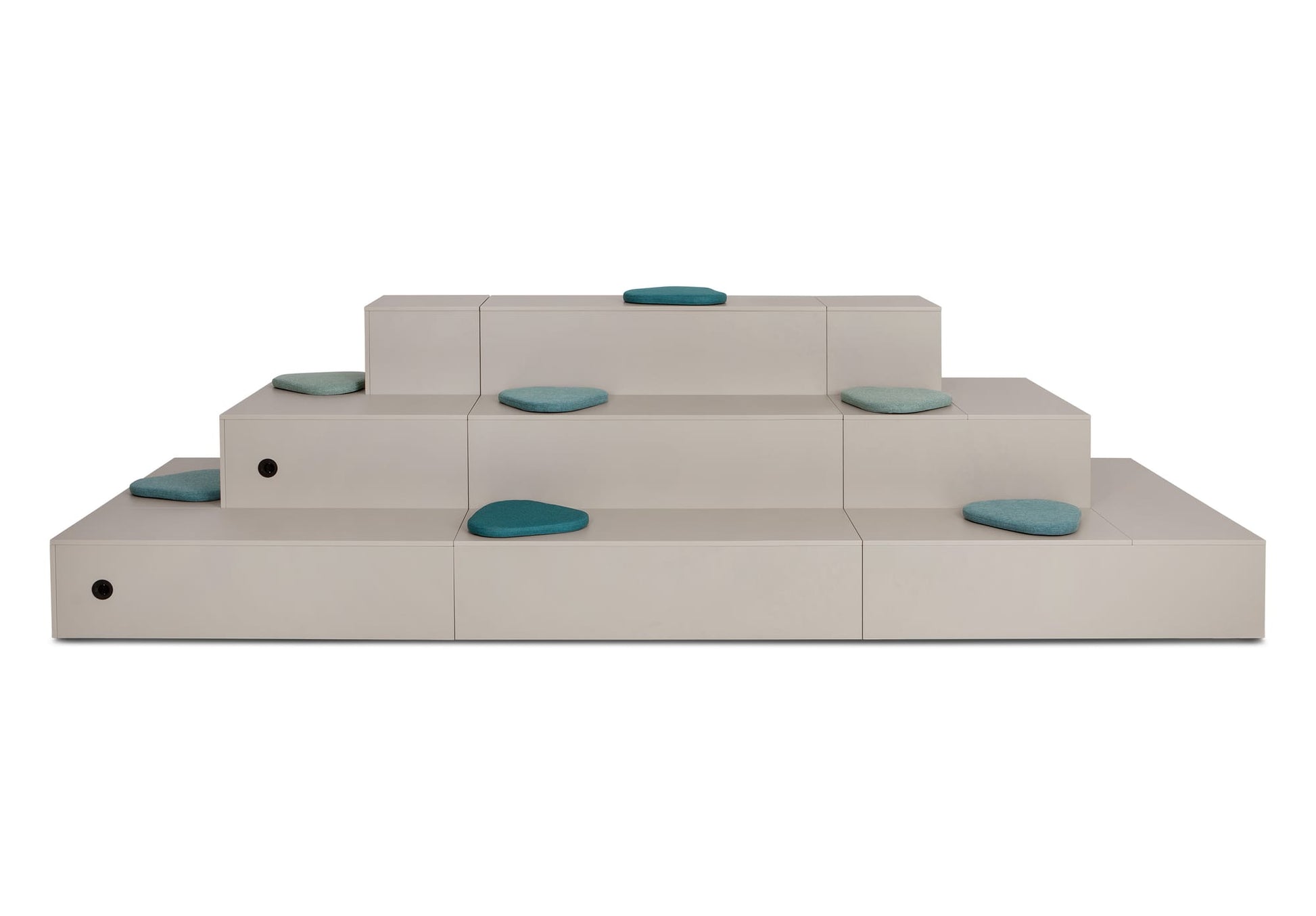 Podium can be a place to sit or even lie down on, used by a bigger group of people. It is meant for the large spaces where informality, spontaneity and temporariness play a key role. It has been designed especially for relaxation areas, long corridors or rooms where you hold creative meetings. The three different shapes of this piece of furniture will allow for multiple arrangements, so you can use your imagination and adjust the Podium to your own needs. The comfortable cushions will add charm to this structure, whereas a multitude of colours will make all interiors enlivened and diverse.