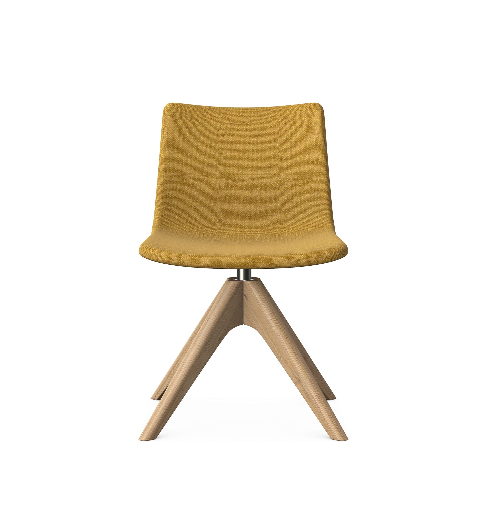 Prime, a slim, elegant, fully upholstered family of adaptable chairs, with two seat widths for a greater number of uses and settings. The larger version has a more comfortable and wider shape perfect for smart working situations. Prime has a base for every occasion, including a unique four-legged wooden frame on castors. Regardless of the base, Prime is available with or without armrests, and upholstered on the larger chair creating endless possibilities.