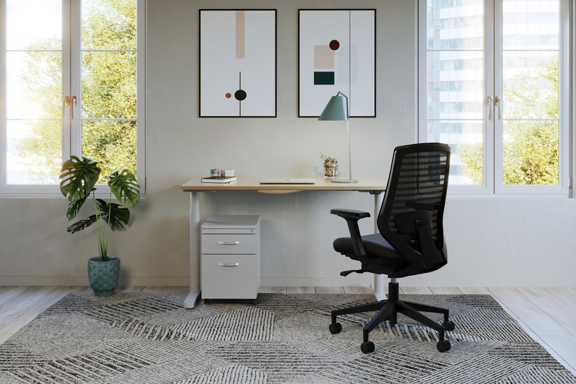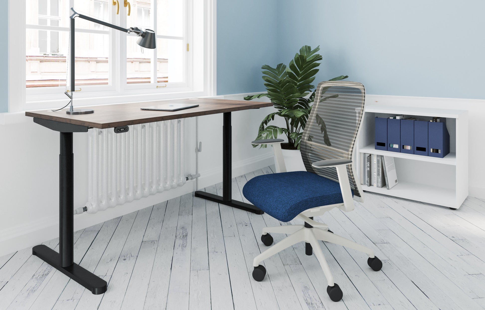 RoundE is a compact, space-saving solution – ideal for small or home office environments. The RoundE sit-stand desk adjusts from a height of 650mm to 1150mm (without a desktop) with the easy-to-use handset.