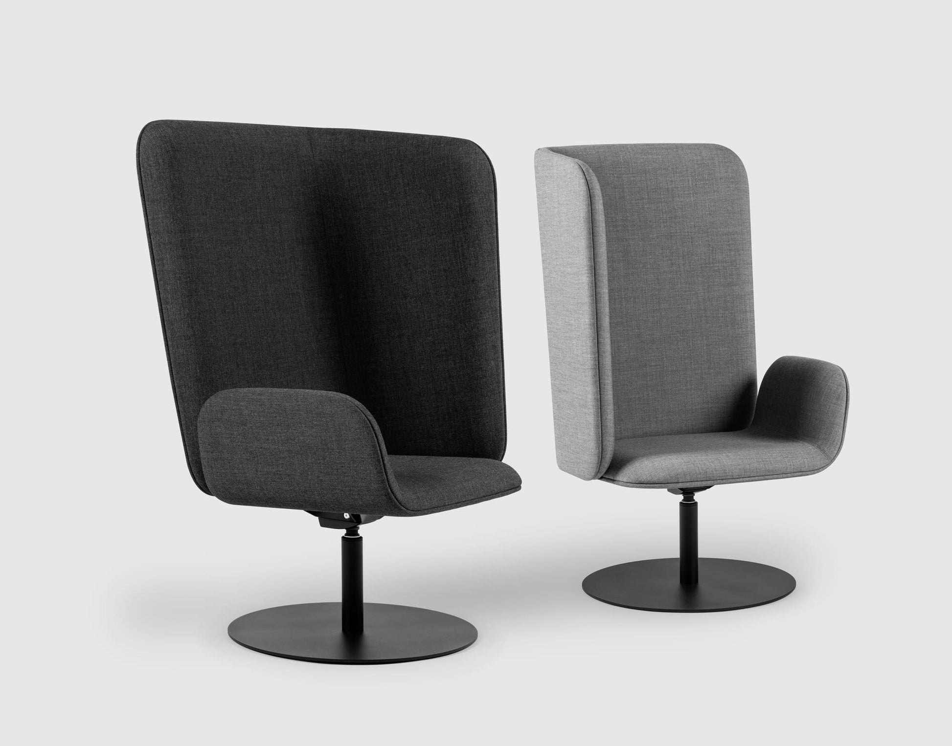 Shieldon is a comfortable swivel chair with a unique shape perfect for maintaining individual space in open-plan venues.