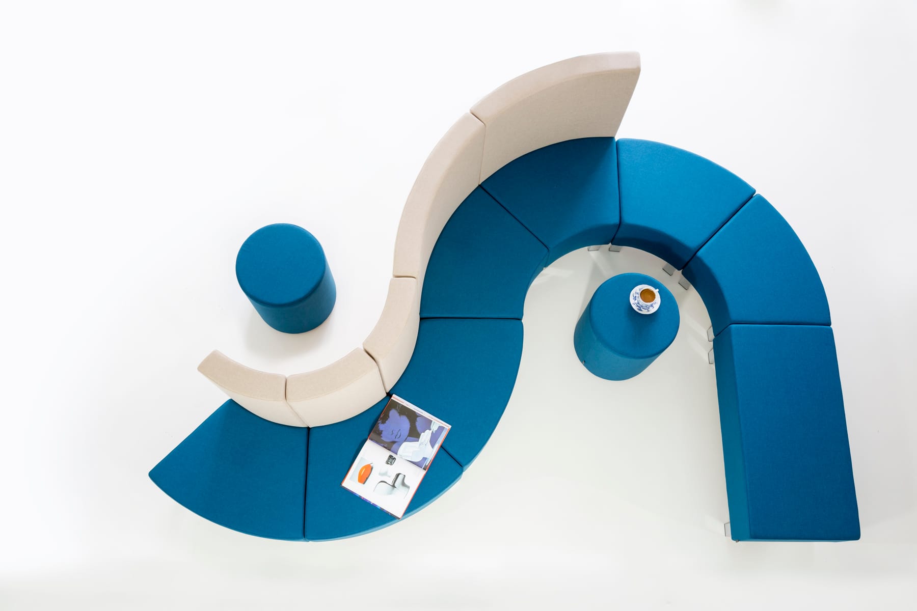 Snake encircles the entire spaces of the hallways. The backrest elements form columns that are surrounded by the seat elements. Think how much freedom Snake gives you in creating space. You can build full circles from 8 elements, or an infinite length hose for seats, complementing it with simple elements. You can add a backrest to it or give it up. Do you change your mind over time? The easy way to connect the elements means that Snake can be assembled from the same elements in completely different ways. Have you already counted how many pieces you need to build your Snake land?
