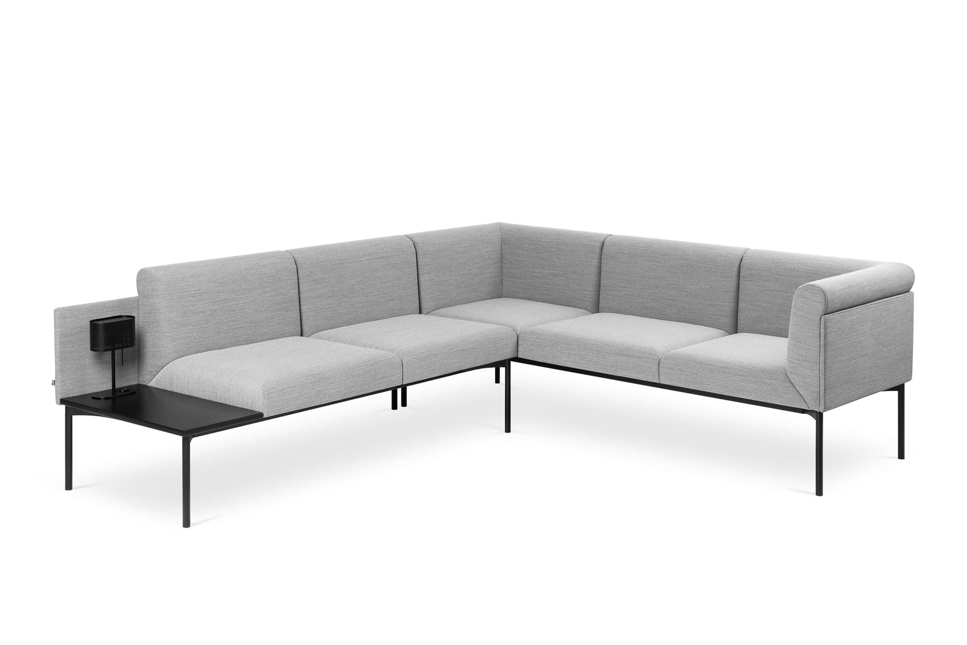 Sona is an ideal solution for creating quiet islands in large open-space offices, also because of the additional functionality of media ports for connecting and charging mobile devices integrated into table tops.