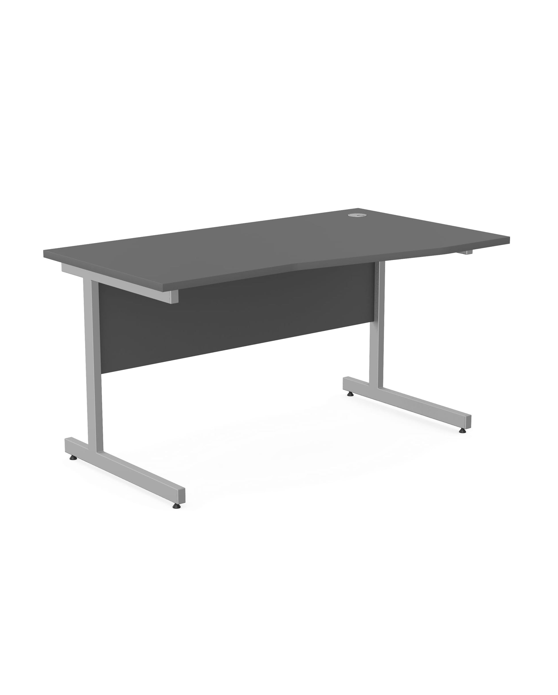 There is a round cable grommet in the table top.