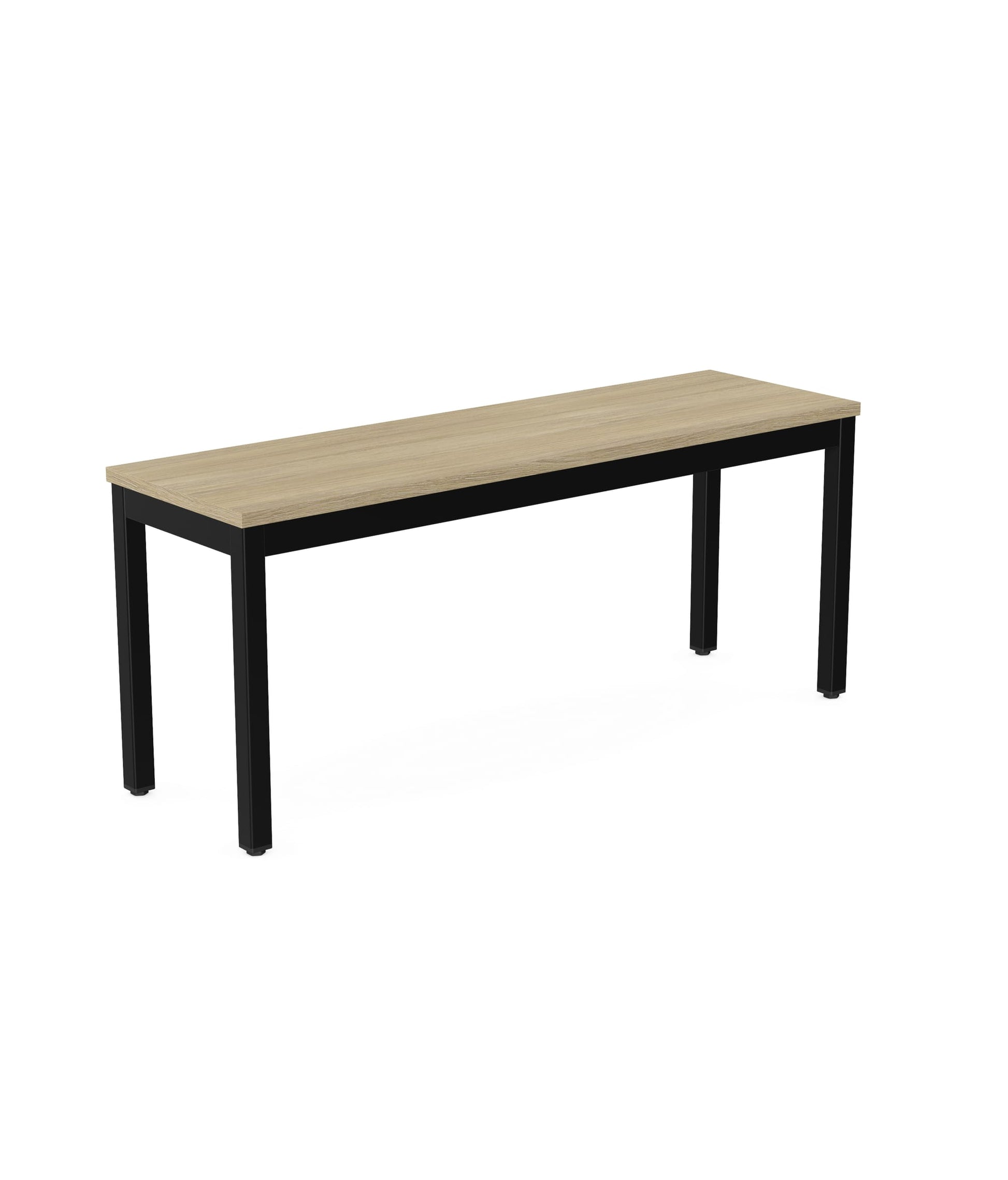 The seat is made of 18mm thick melamine board, metal legs are powder coated in black RAL9005, made of a 30x30mm steel tube.