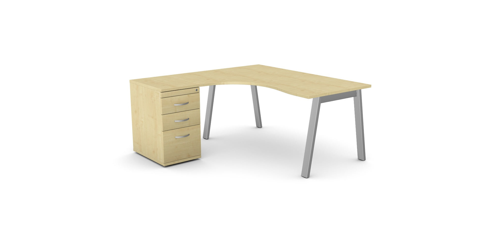 Switch 1 Person Crescent Desk & Desk High Pedestal, A-Leg