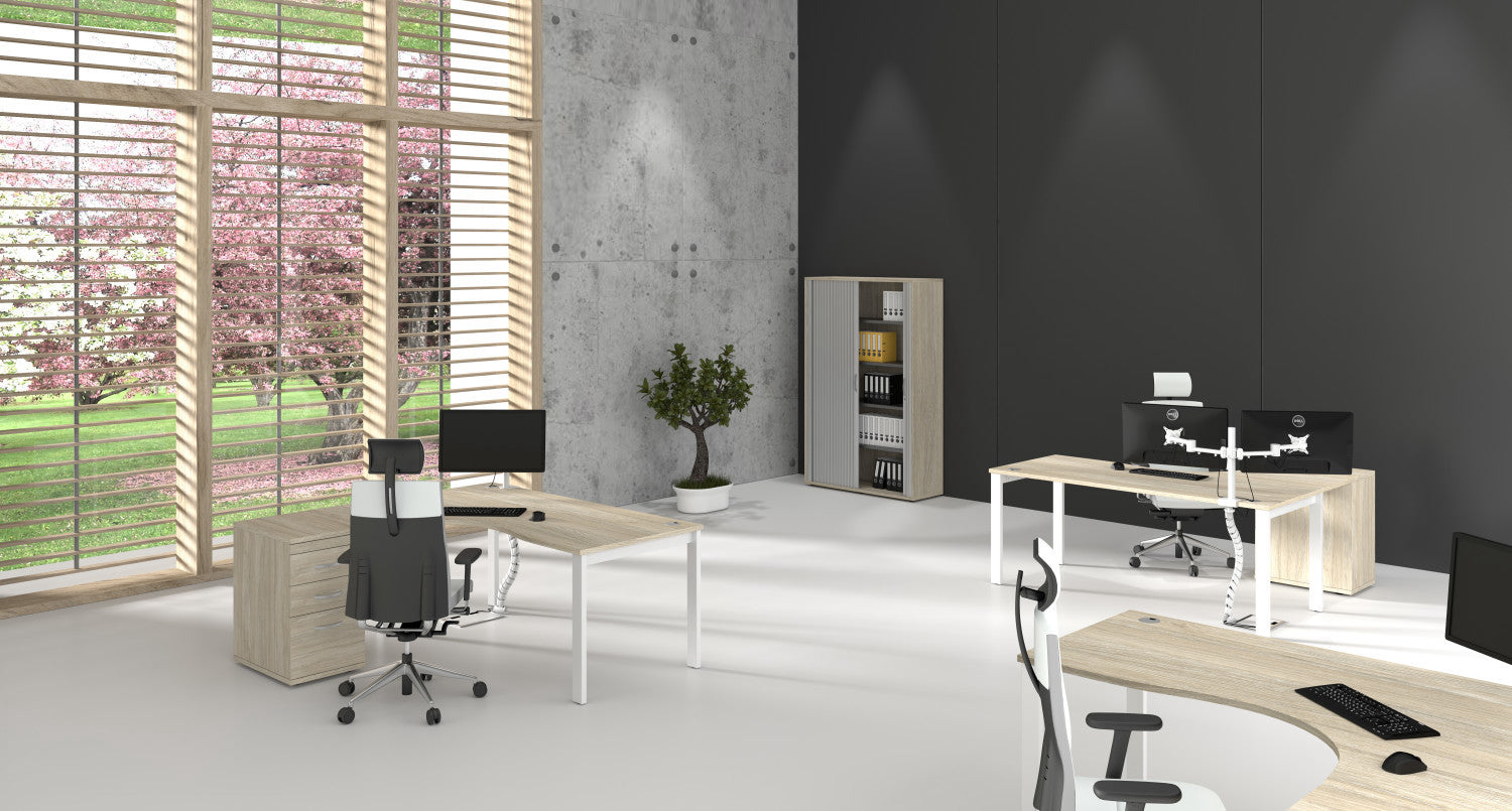 Switch is a highly flexible desking range with the ability to make complex single structure configurations of any length. Five sub systems comprising of various shapes interact together to give you the most versatile desking system we have ever designed.
