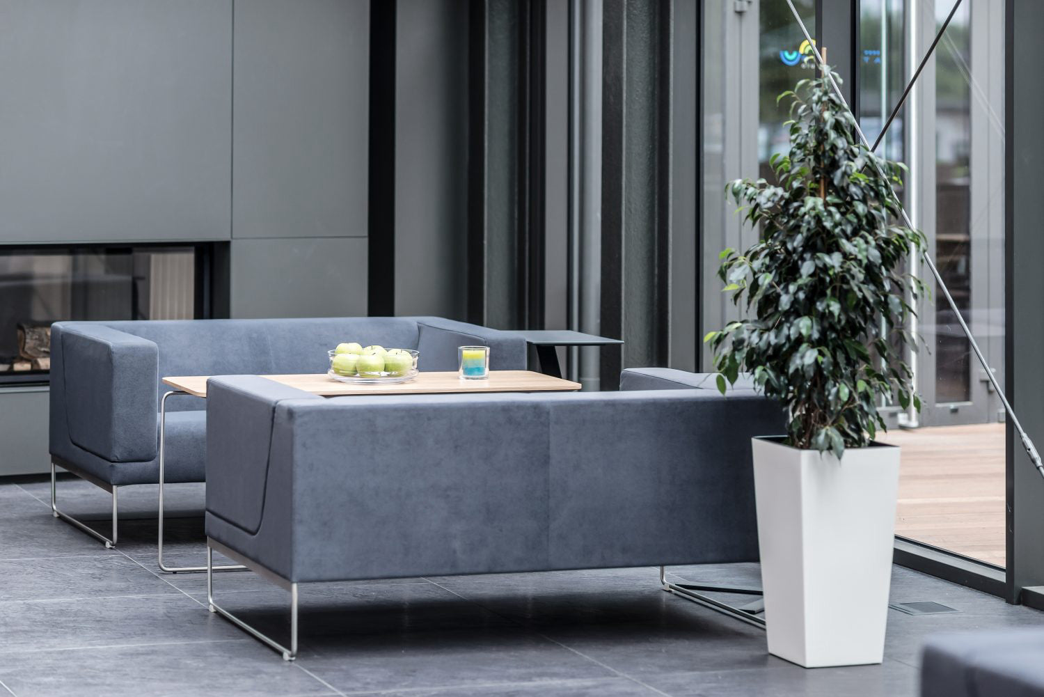 A combination of cubic shape and simple shape with exceptional line of elbow-rests gives a feeling of exceptional character of TRITOS sofas and couches.