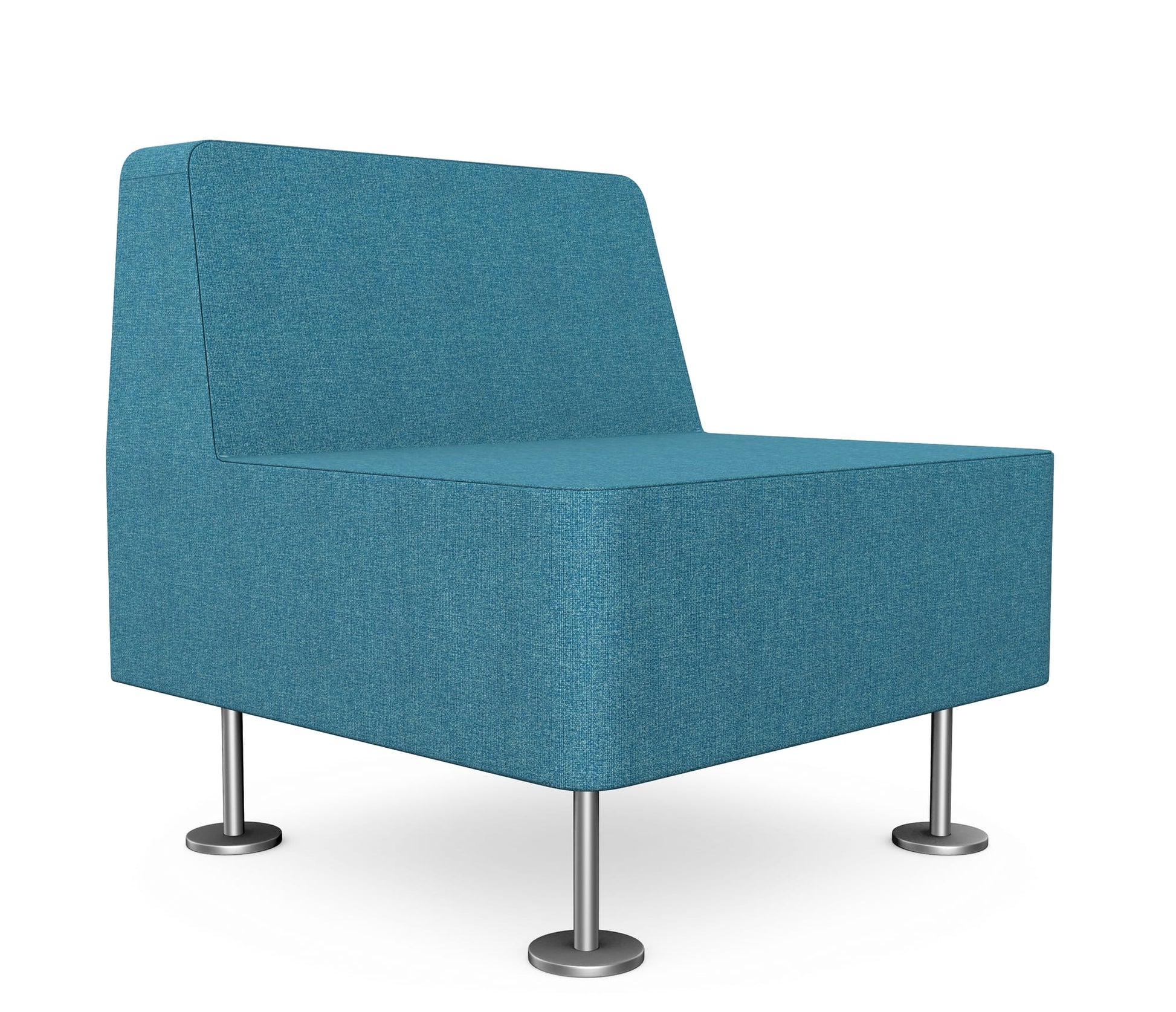 Wall In is a modular seating system characterised by simple geometric forms, suitable for spacious and modern interiors such as halls of public buildings and receptions. The collection has been developed to offer a highly versatile mobile sitting configurations, easily rearranged and adjustable. The family comprises poufs, armchairs, tables and linking units (30 and 60 degrees) completed with partition walls upholstered with structural fabric. The wall fulfills a separating function marking out a space perfect for a private conversation. Legs finished off with esthetic, chromed plates are the eye-catching elements of the furniture.