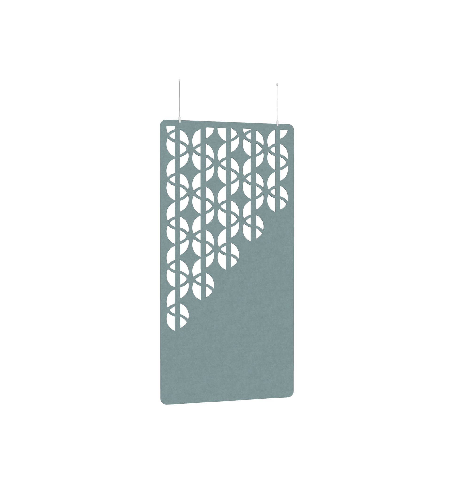 Koala Workspace dividers are made from premium acoustic panels and recycled PET material (recycled bottles) and come in an extensive range of designs and colours. These dividers act as a physical division between spaces within offices or other rooms, whilst also introducing some added acoustic absorption to reduce overall noise. Dividers are suspended from the the ceiling.