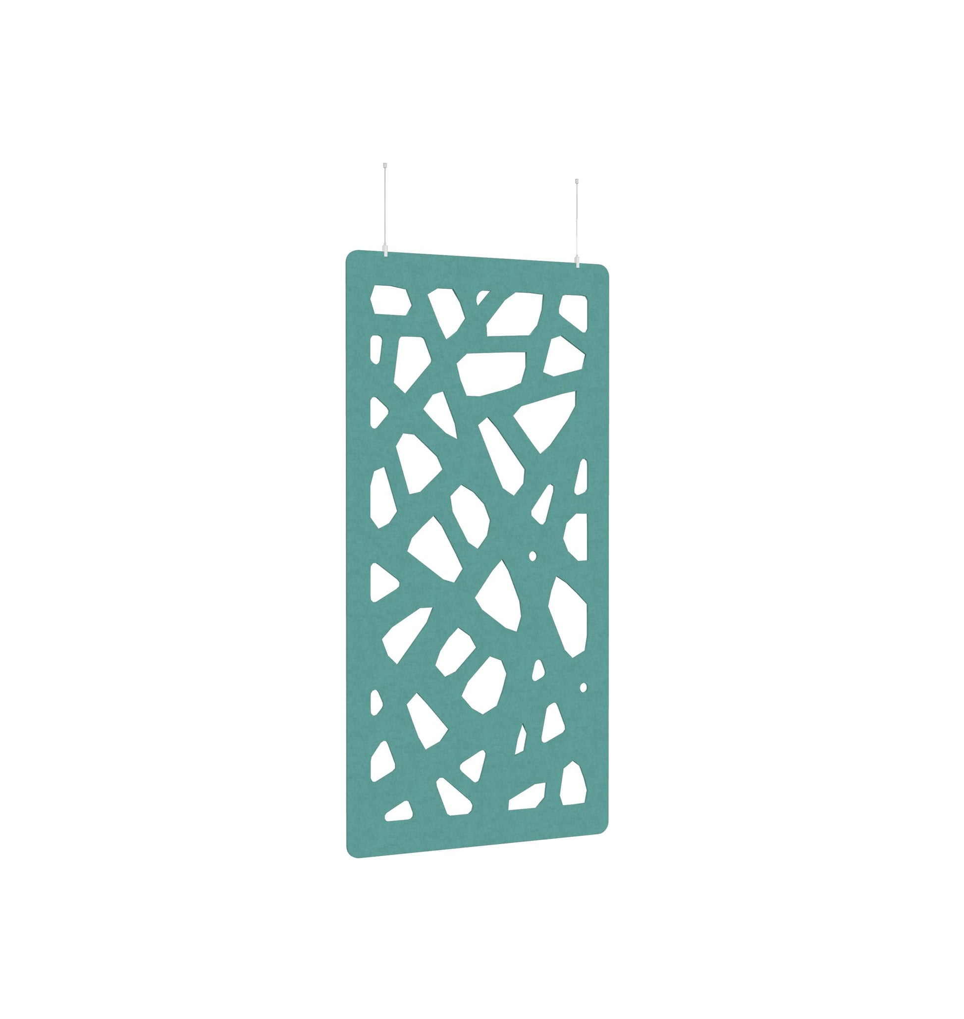 Koala Workspace dividers are made from premium acoustic panels and recycled PET material (recycled bottles) and come in an extensive range of designs and colours. These dividers act as a physical division between spaces within offices or other rooms, whilst also introducing some added acoustic absorption to reduce overall noise. Dividers are suspended from the the ceiling.