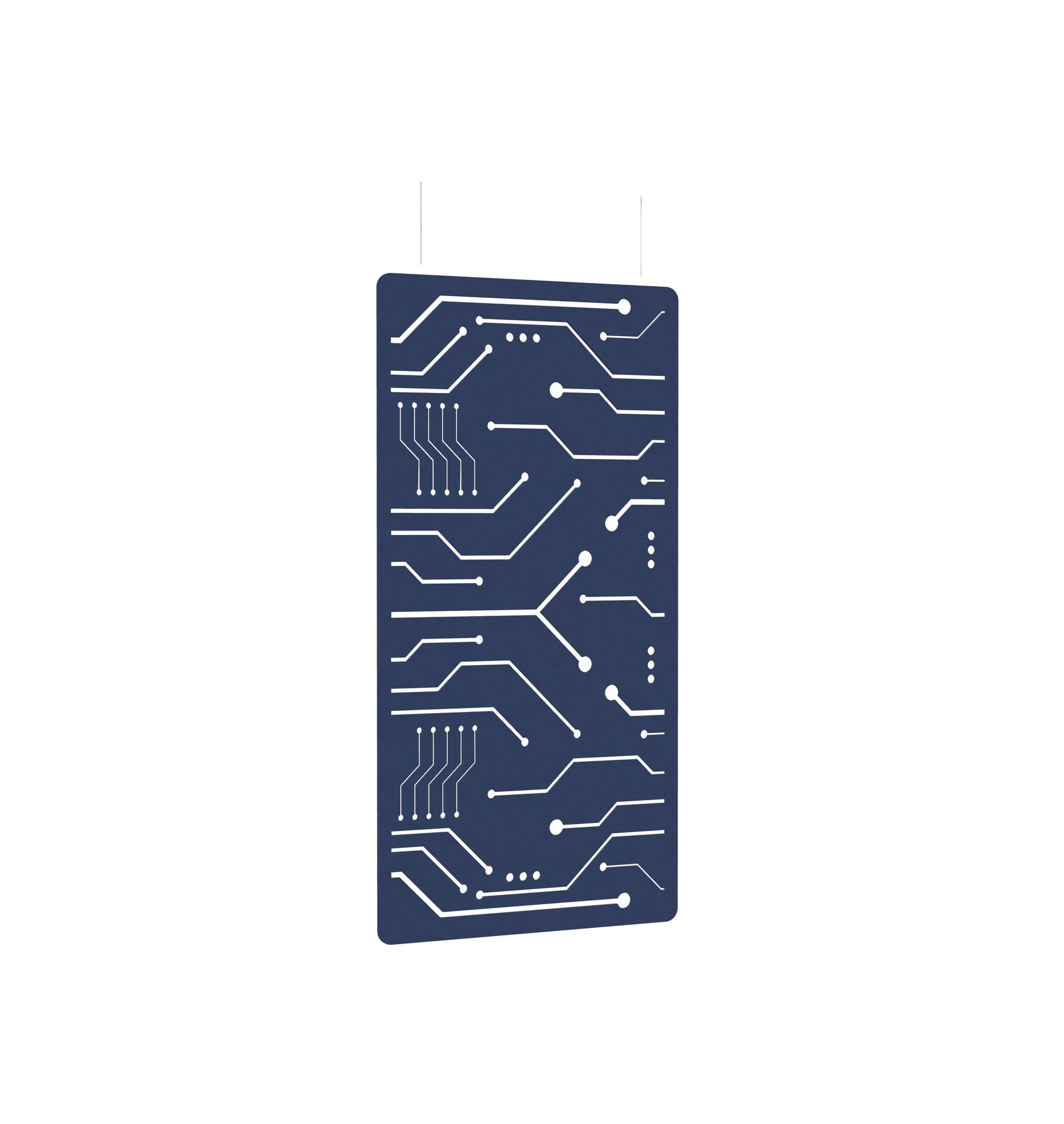 Koala Workspace dividers are made from premium acoustic panels and recycled PET material (recycled bottles) and come in an extensive range of designs and colours. These dividers act as a physical division between spaces within offices or other rooms, whilst also introducing some added acoustic absorption to reduce overall noise. Dividers are suspended from the the ceiling.