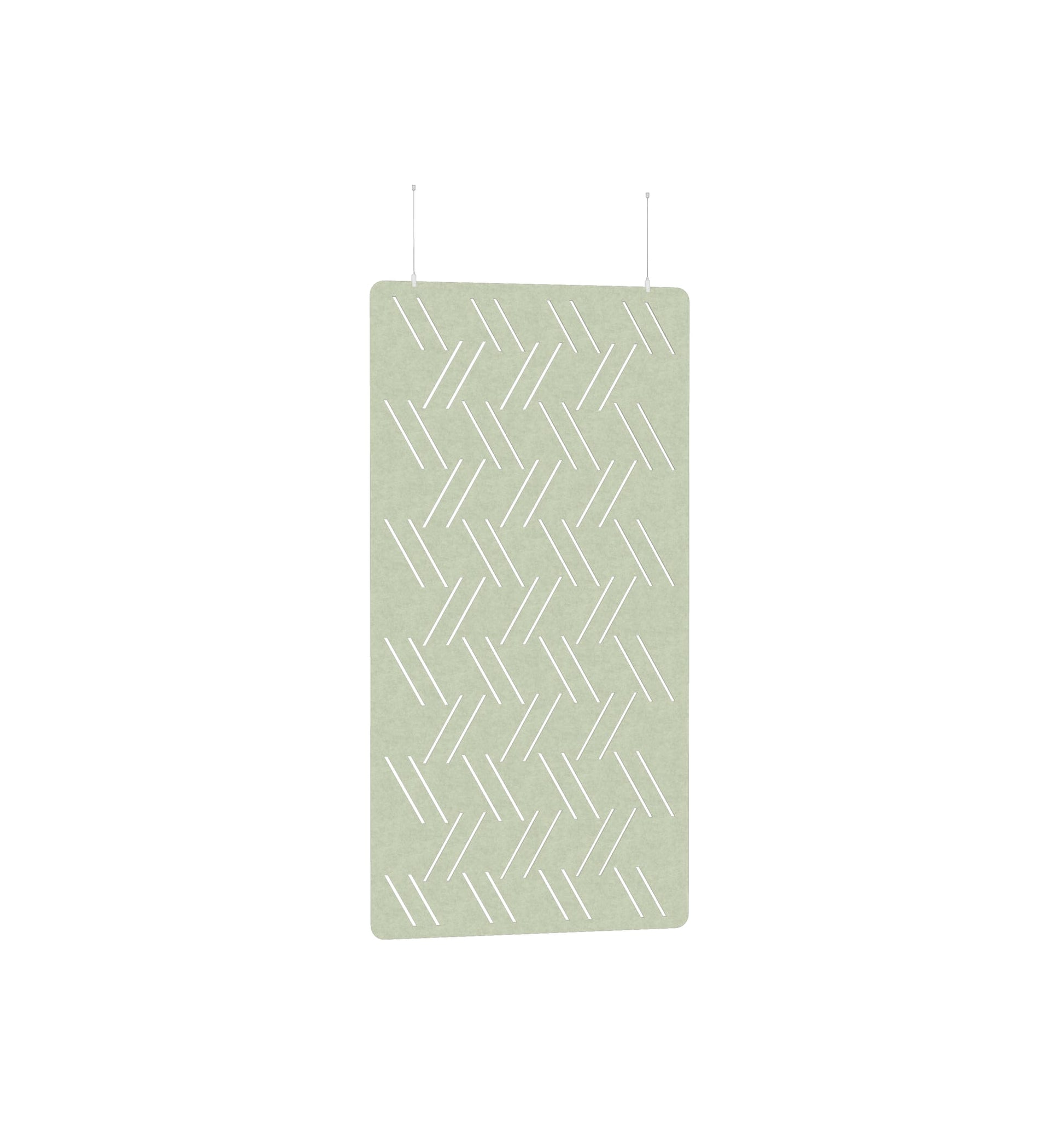Koala Workspace dividers are made from premium acoustic panels and recycled PET material (recycled bottles) and come in an extensive range of designs and colours. These dividers act as a physical division between spaces within offices or other rooms, whilst also introducing some added acoustic absorption to reduce overall noise. Dividers are suspended from the the ceiling.