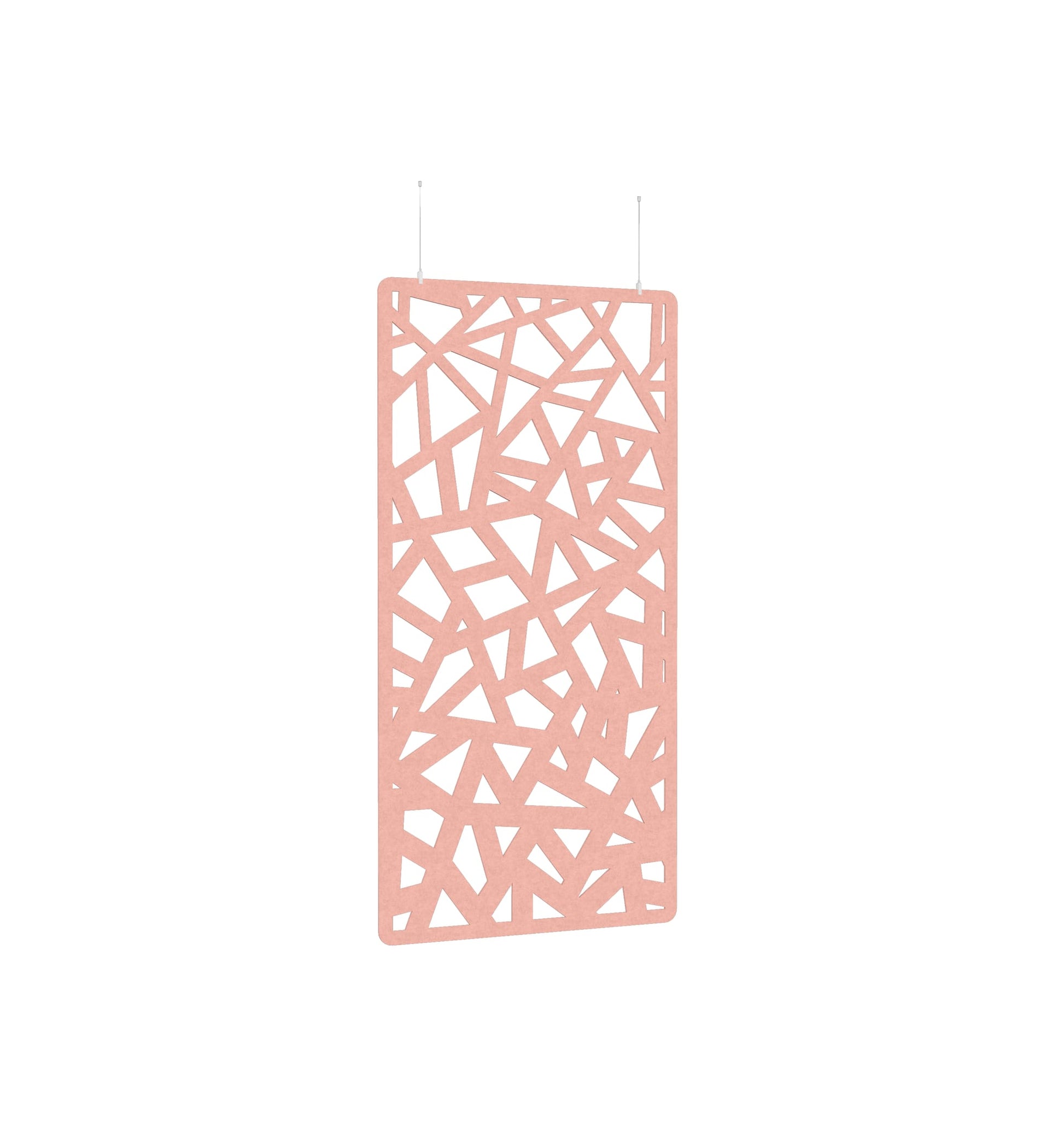 Koala Workspace dividers are made from premium acoustic panels and recycled PET material (recycled bottles) and come in an extensive range of designs and colours. These dividers act as a physical division between spaces within offices or other rooms, whilst also introducing some added acoustic absorption to reduce overall noise. Dividers are suspended from the the ceiling.