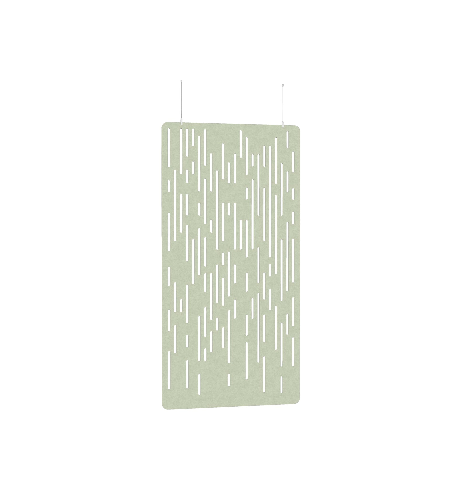 Koala Workspace dividers are made from premium acoustic panels and recycled PET material (recycled bottles) and come in an extensive range of designs and colours. These dividers act as a physical division between spaces within offices or other rooms, whilst also introducing some added acoustic absorption to reduce overall noise. Dividers are suspended from the the ceiling.